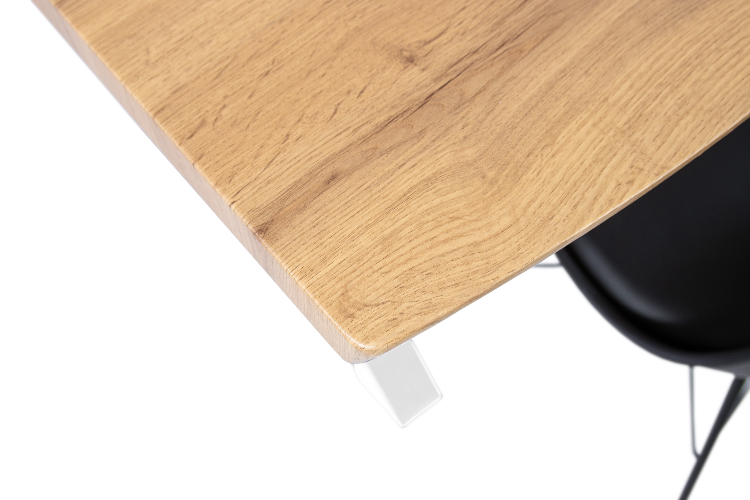 Durch die hohle Bauweise bleibt der Tisch leicht und einfach zu bewegen, während die gefräste Baumkante ihn optisch wie einen Massivholztisch wirken lässt, aber gleichzeitig erschwinglicher und pflegeleichter bleibt.