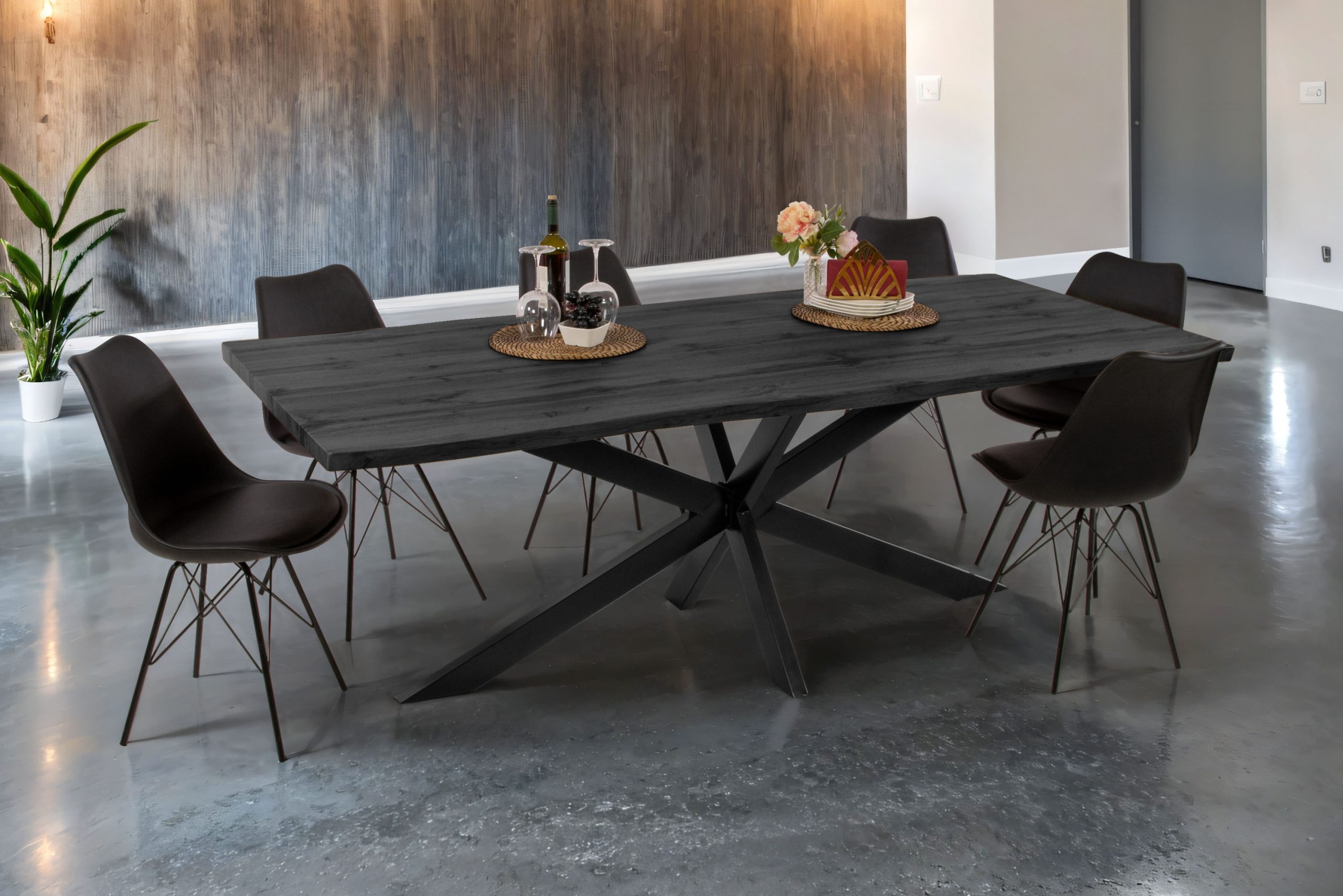 Esstisch Josy | Holz Grau-Optik | Spider-Gestell Metall schwarz | 240 x 100 cm | 40 mm Tischplatte mit gefräster Baumkante