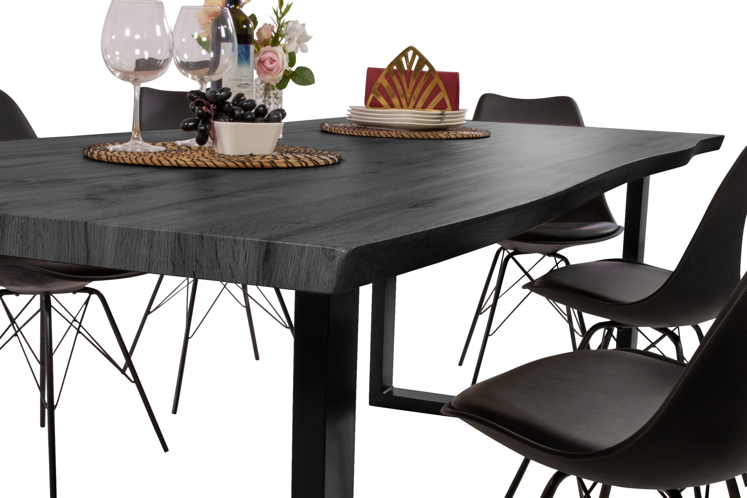 Das schwarze U-Gestell aus Metall sorgt für außergewöhnliche Stabilität und schafft gleichzeitig eine moderne, klare Linienführung. Die großzügigen Maße von 240 x 100 cm machen den Tisch ideal für gemeinsame Mahlzeiten, Homeoffice-Phasen oder gesellige Abende. Dank mehrerer Montagelöcher lässt sich der Fußabstand flexibel einstellen – für noch mehr Komfort und Beinfreiheit.