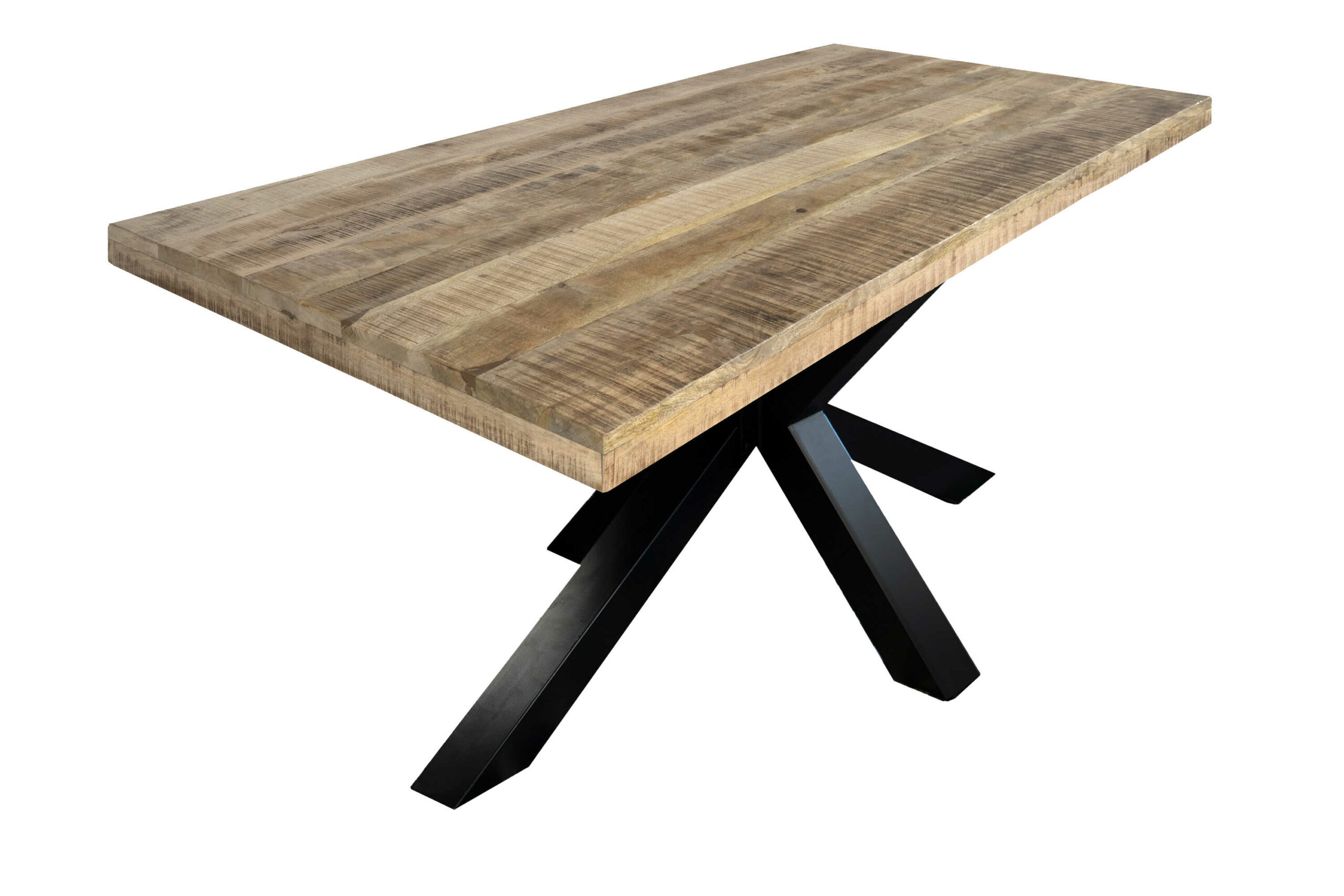 Trendiger Esszimmertisch Rio, 300x100cm, Mangoholz massiv, gerade Tischplatte, Spider-Gestell Schwarz