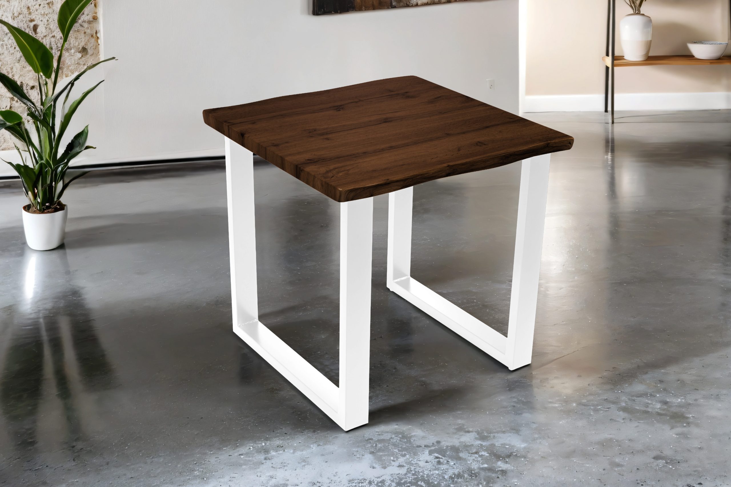Esstisch Josy | 80 x 80 cm | Nussbaum-Optik | U-Gestell Metall weiß | 40 mm Tischplatte mit gefräster Baumkante