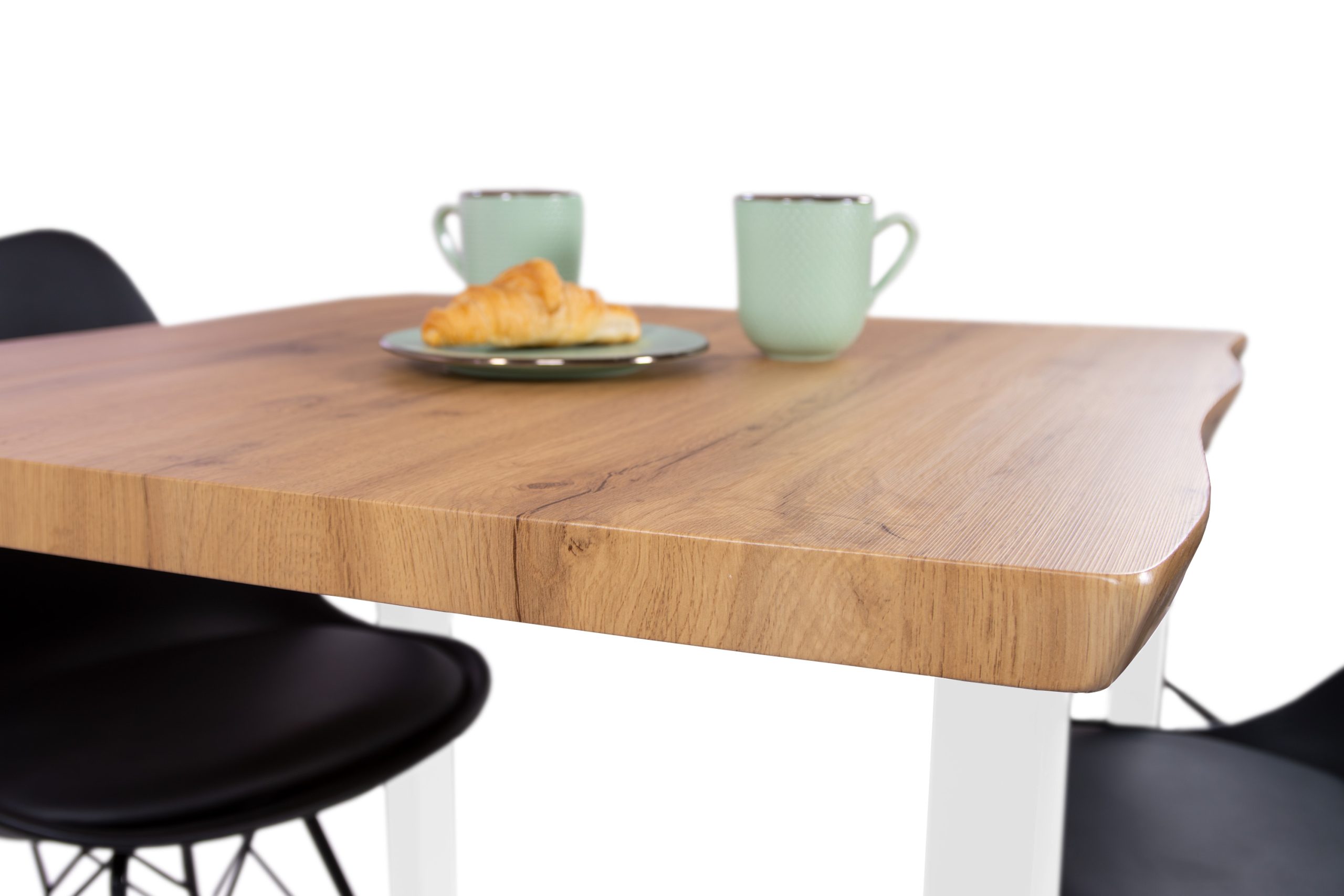 Esstisch Josy | 80 x 80 cm | Wildeiche-Optik | U-Gestell Metall weiß | 40 mm Tischplatte mit gefräster Baumkante
