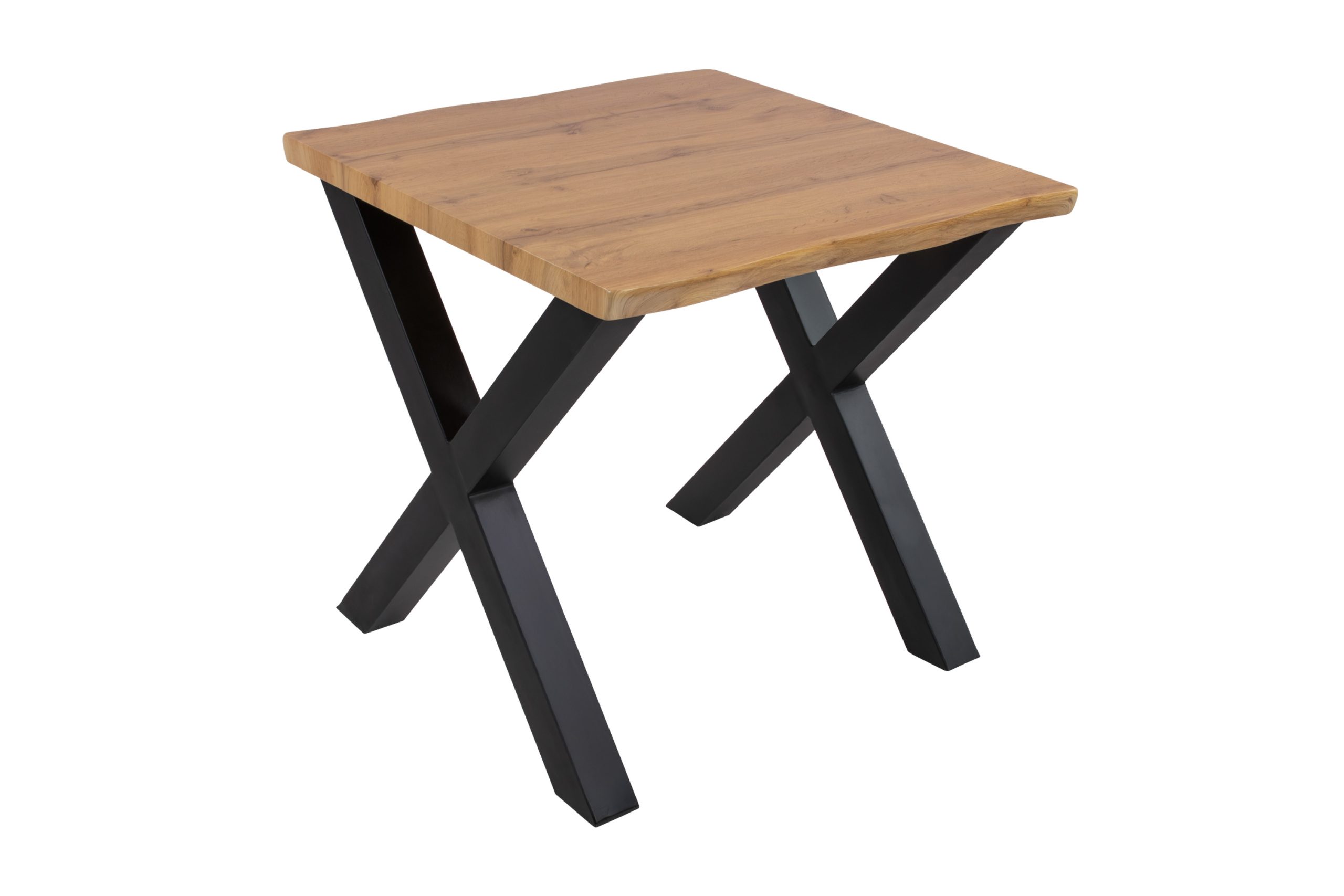 Esstisch 80x80 cm Baumkante Holz Wildeiche-Optik X-Gestell Metall schwarz JOSY