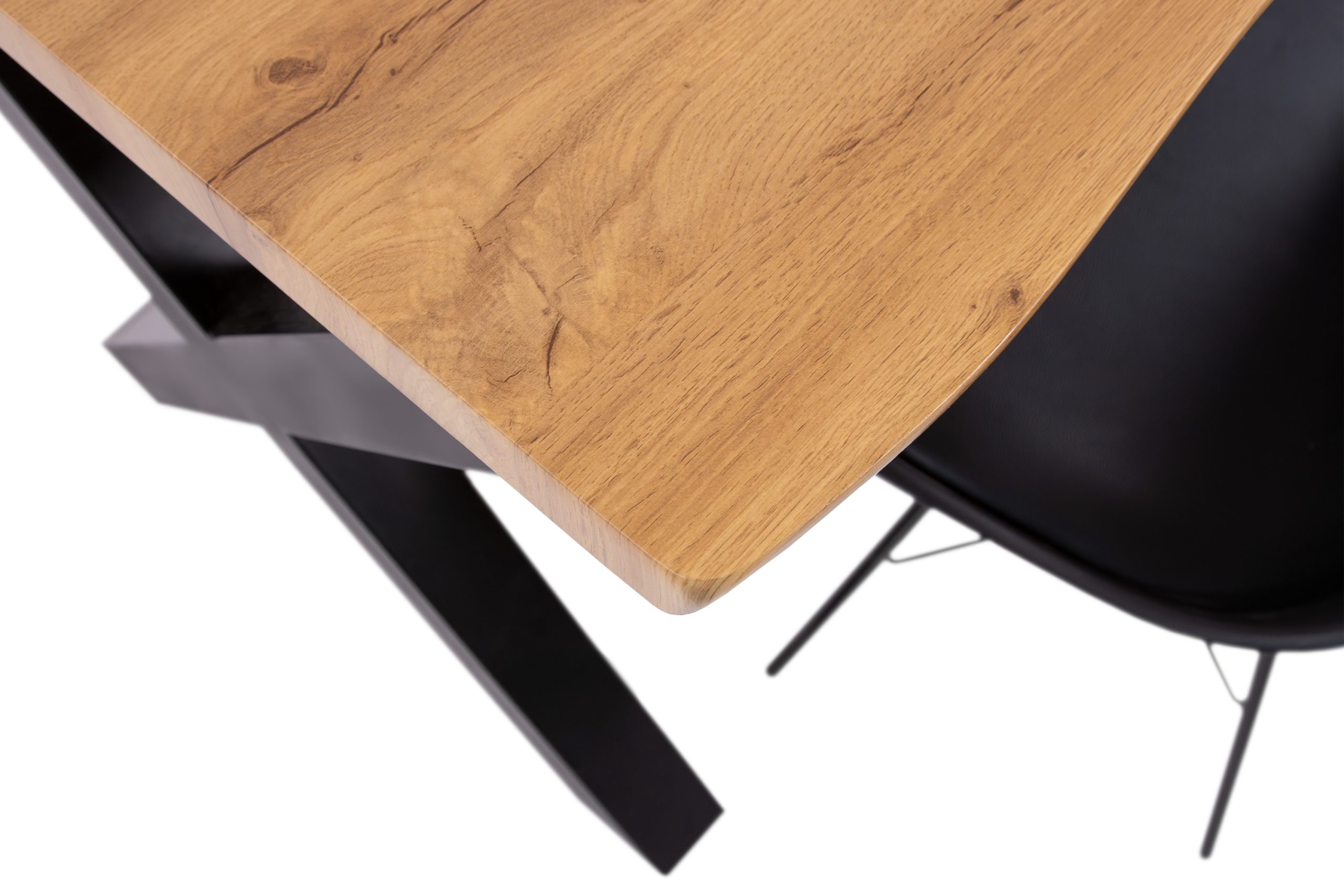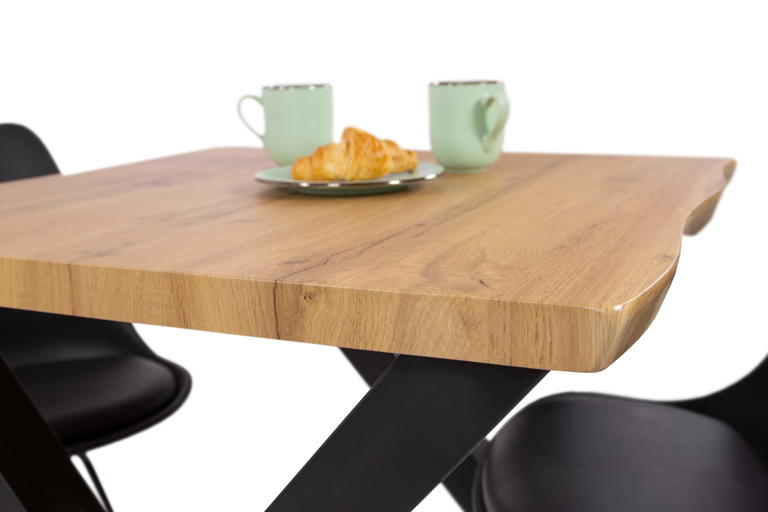 Die 40 mm starke Tischplatte aus MDF mit Wildeiche-Dekor bringt durch ihre gefräste Baumkante eine natürliche Eleganz in jeden Wohnbereich. Das lackierte, schwarze X-Gestell bietet Stabilität und betont das moderne Design des Tisches. Die MDF-Tischplatte kombiniert die warme Optik von Wildeiche mit der Robustheit und Pflegeleichtigkeit von MDF, das auch bei Schwankungen in der Raumtemperatur formstabil bleibt.