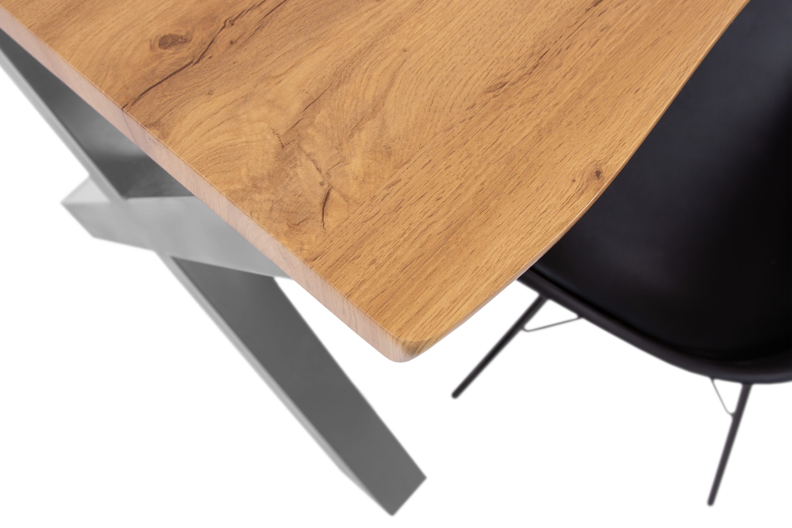 Die 40 mm starke Tischplatte aus MDF mit Wildeiche-Dekor bringt durch ihre gefräste Baumkante eine natürliche Eleganz in jeden Wohnbereich. Das lackierte, silberne X-Gestell bietet Stabilität und betont das moderne Design des Tisches. Die MDF-Tischplatte kombiniert die warme Optik von Wildeiche mit der Robustheit und Pflegeleichtigkeit von MDF, das auch bei Schwankungen in der Raumtemperatur formstabil bleibt.