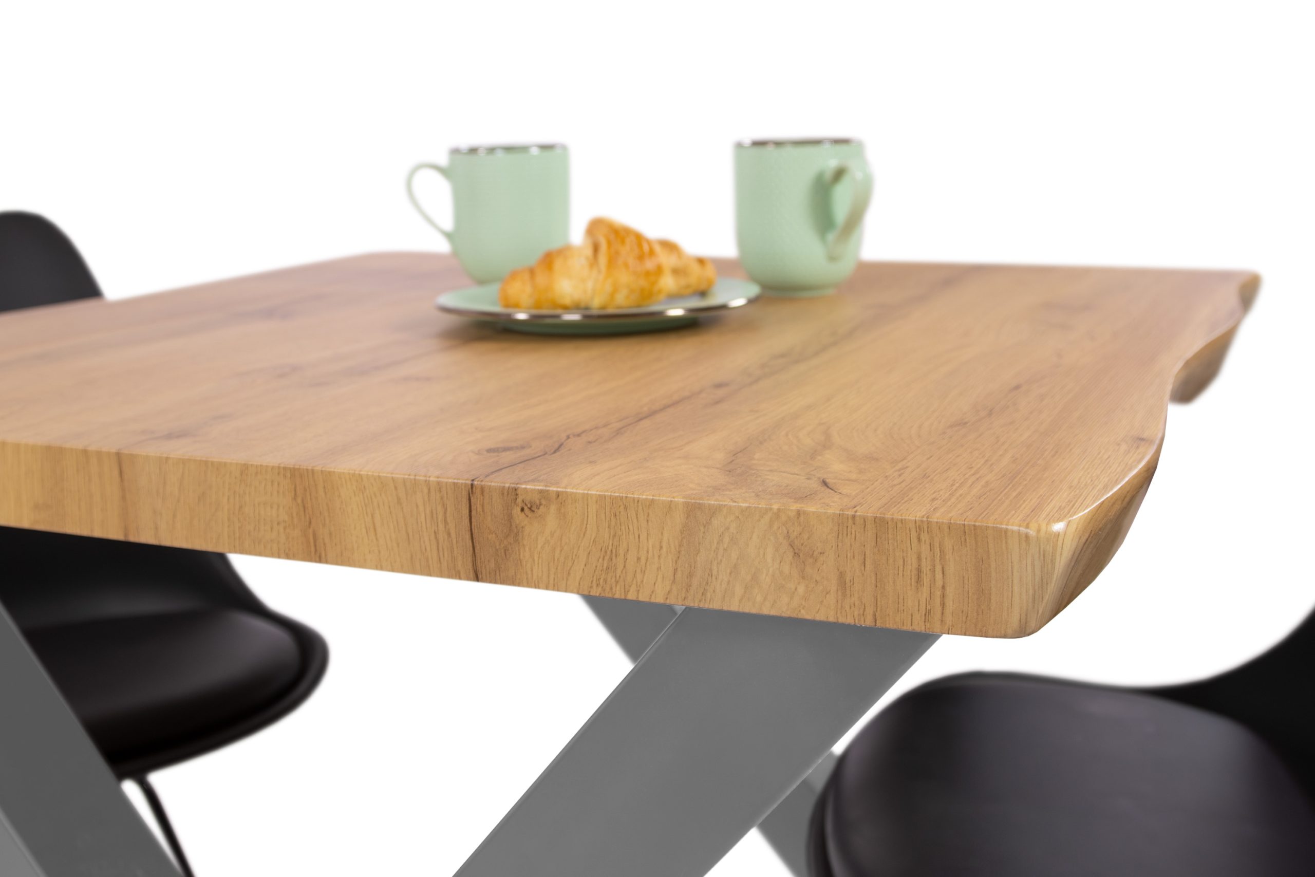 Durch die hohle Bauweise bleibt der Tisch leicht und einfach zu bewegen, während die gefräste Baumkante ihn optisch wie einen Massivholztisch wirken lässt, aber gleichzeitig erschwinglicher und pflegeleichter bleibt.