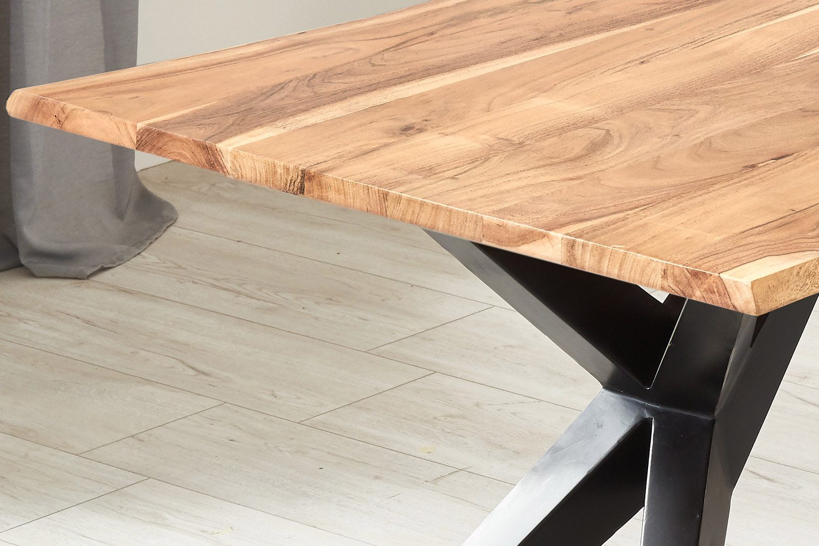 Trendiger Esszimmertisch Conni mit mattschwarzem Airloft-Gestell aus Roheisen, 220 x 100 cm, Akazienholz naturfarben, echte Baumkante, Tischplatte 26 mm