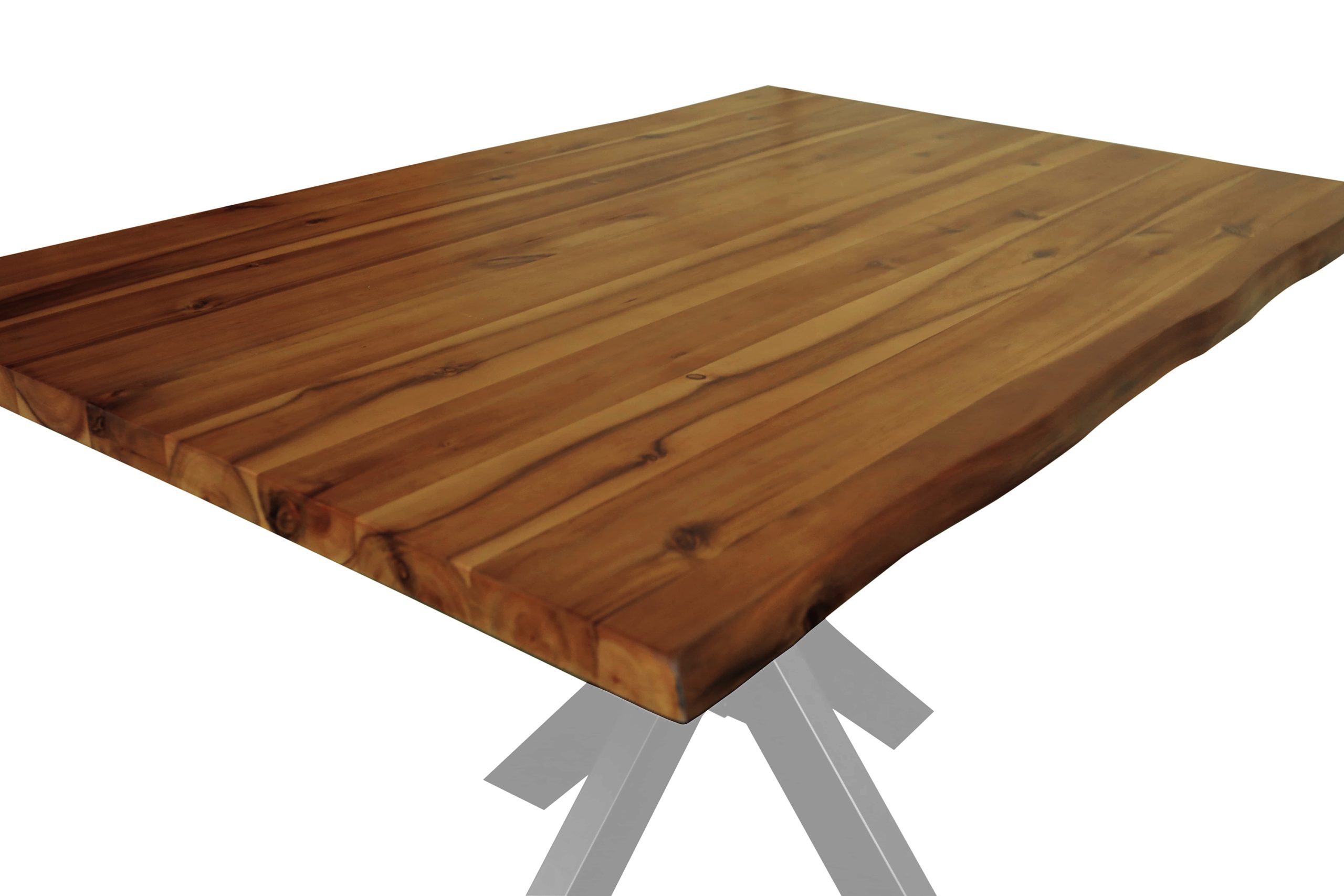 Baumkantentisch Harley | 140 x 80 cm | Akazienholz massiv + honigfarben | Spider-Gestell Silber | Echte Baumkante