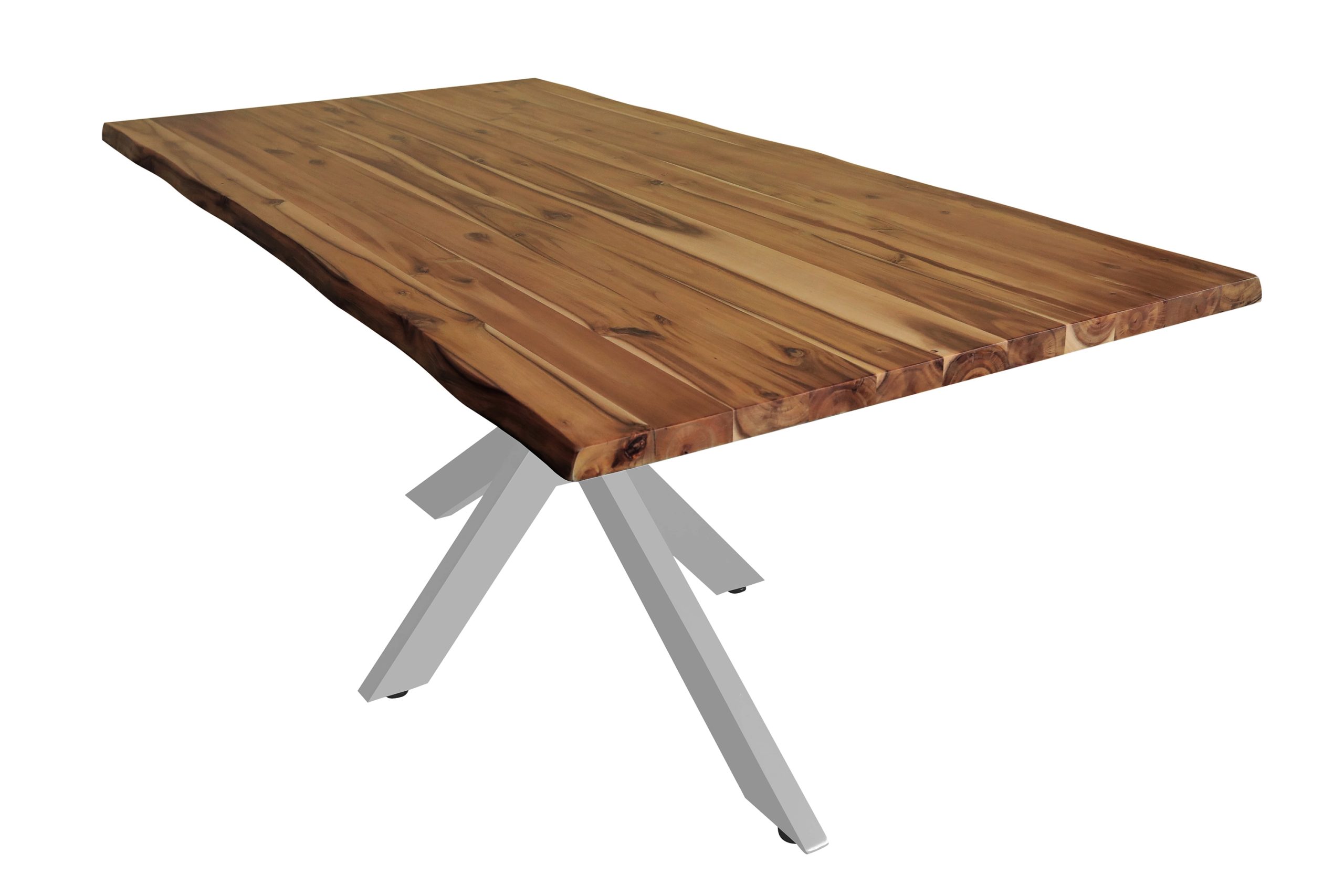 Baumkantentisch Harley | 200 x 100 cm | Akazienholz massiv + honigfarben | Spider-Gestell Silber | Echte Baumkante