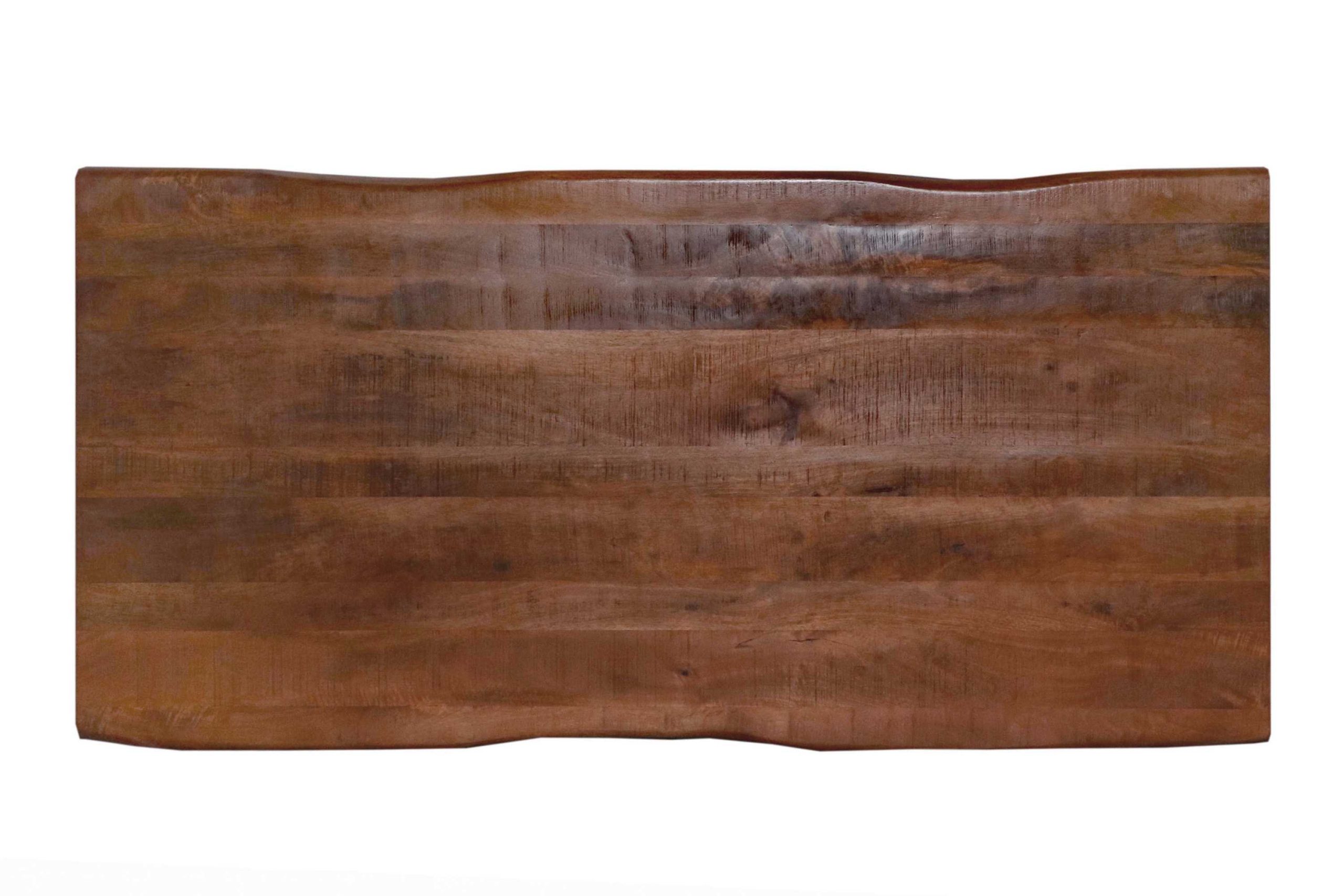 Baumkantentisch Cali | 200 x 100 cm | Mangoholz massiv honigfarben | U-Gestell Silber | Echte Baumkante