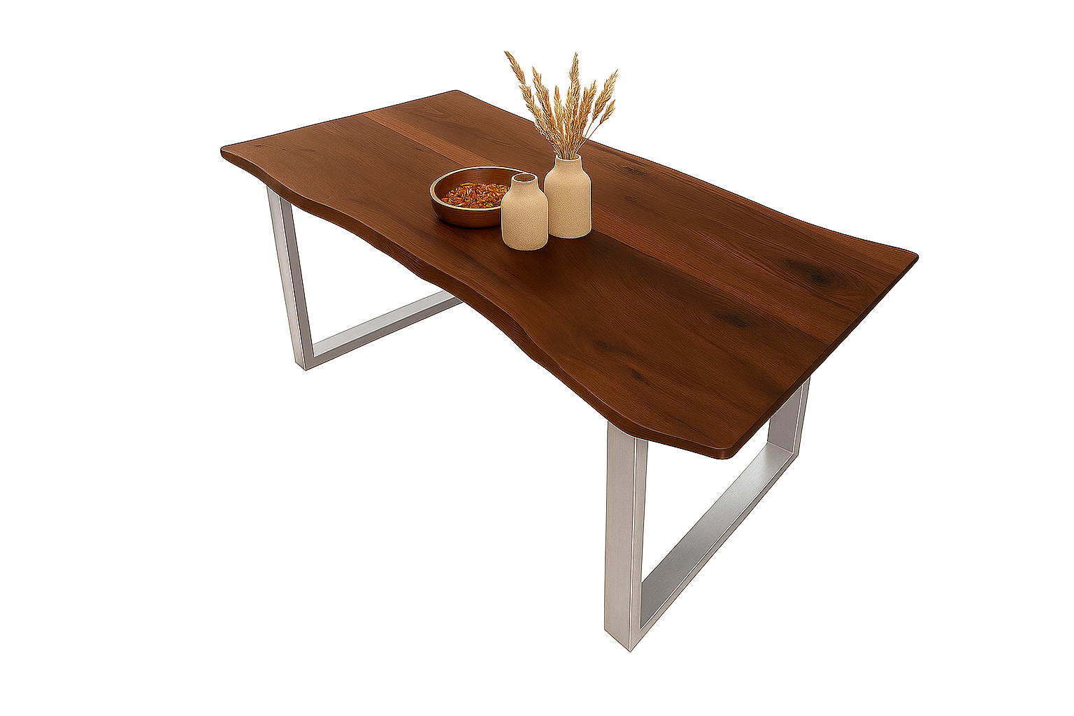Baumkantentisch Quintus | 260 x 100 cm | Akazienholz massiv + nussbaumfarben | U-Gestell Silber | Echte Baumkante
