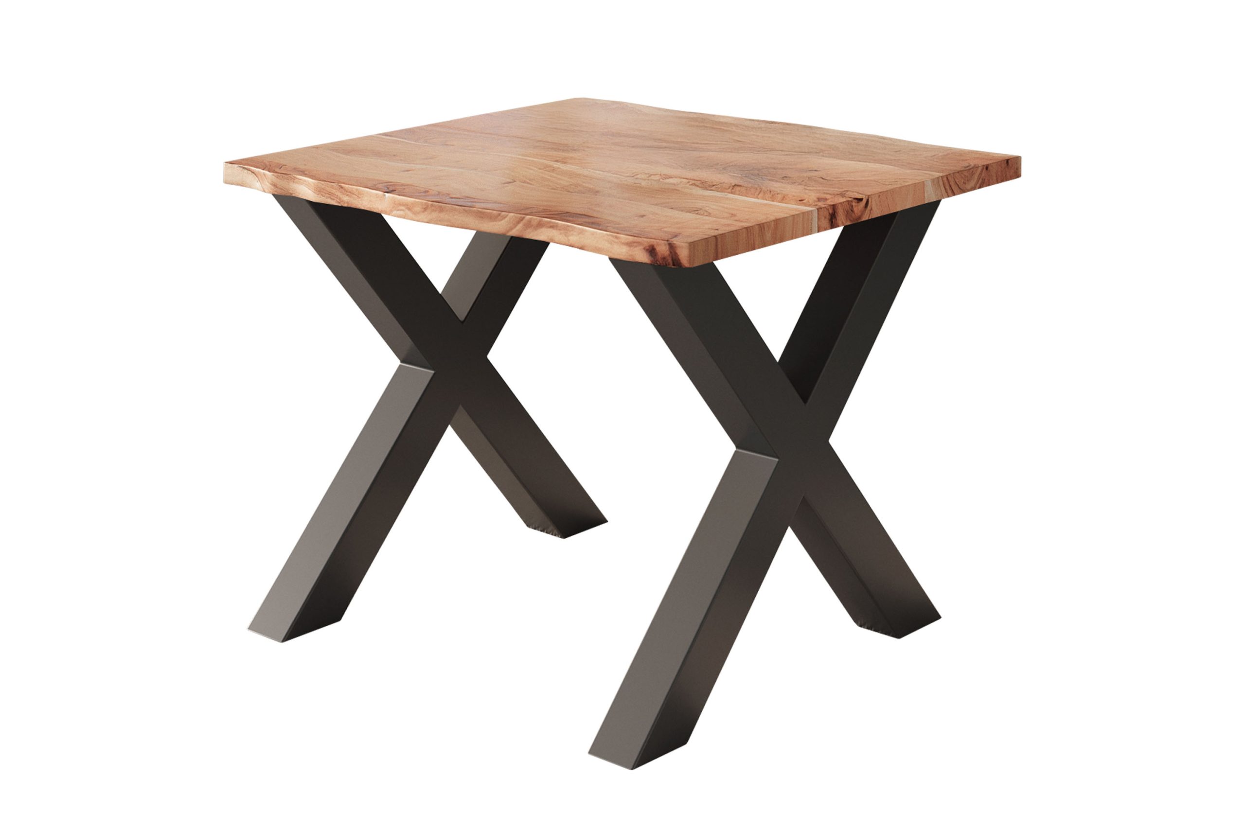 Baumkantentisch Nick | 80 x 80 cm | Akazienholz massiv + naturfarben | X-Gestell Schwarz | Echte Baumkante
