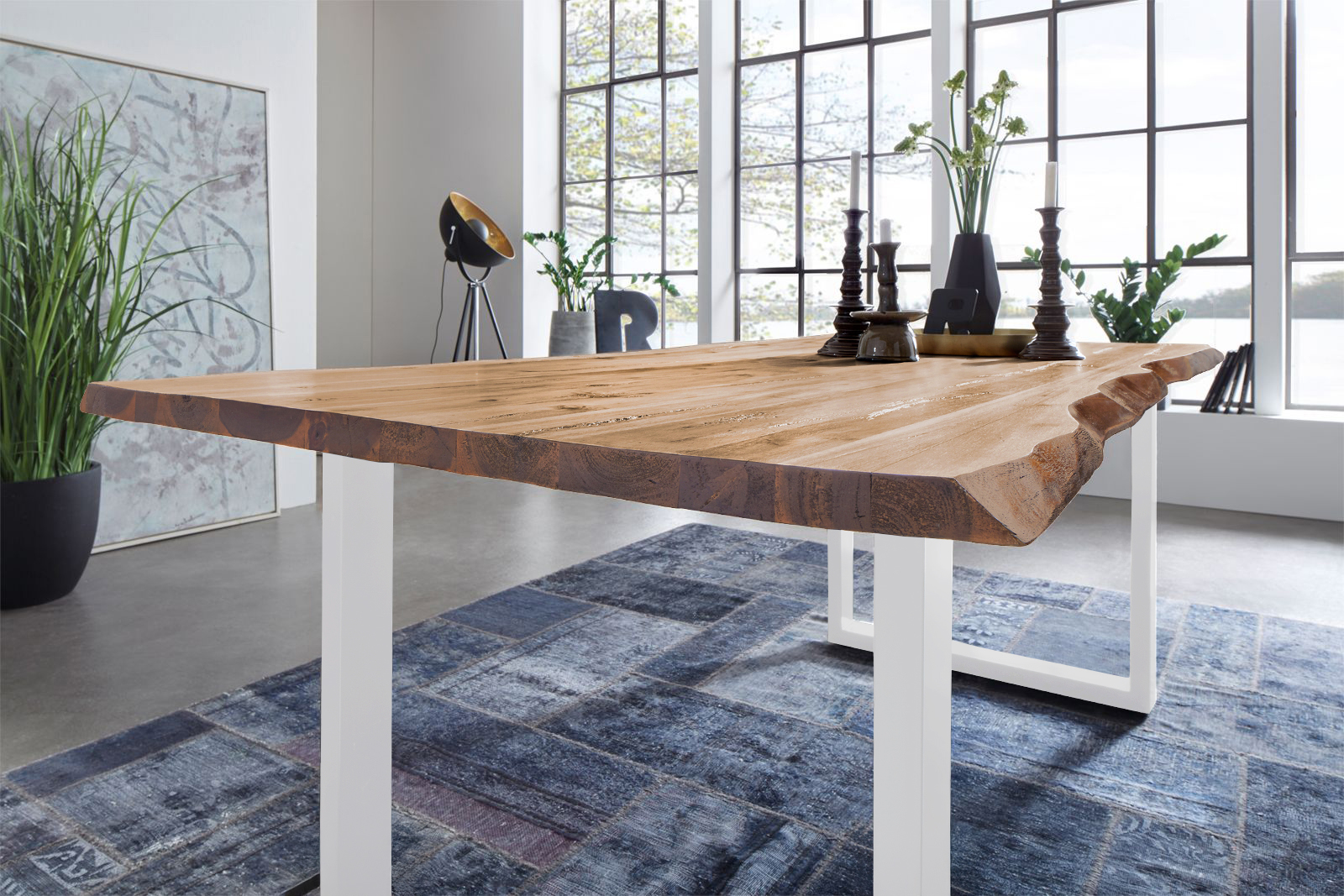 Mit seiner klaren Formensprache und dem robusten weißen U-Gestell aus Metall verbindet Noah rustikale Natürlichkeit mit urbanem Industrial Design. Die 26 mm starke Tischplatte bietet nicht nur visuelle Leichtigkeit, sondern überzeugt auch durch ihre Stabilität und Langlebigkeit – ideal für den täglichen Einsatz als Esszimmertisch oder Mittelpunkt Ihres Familienlebens.
