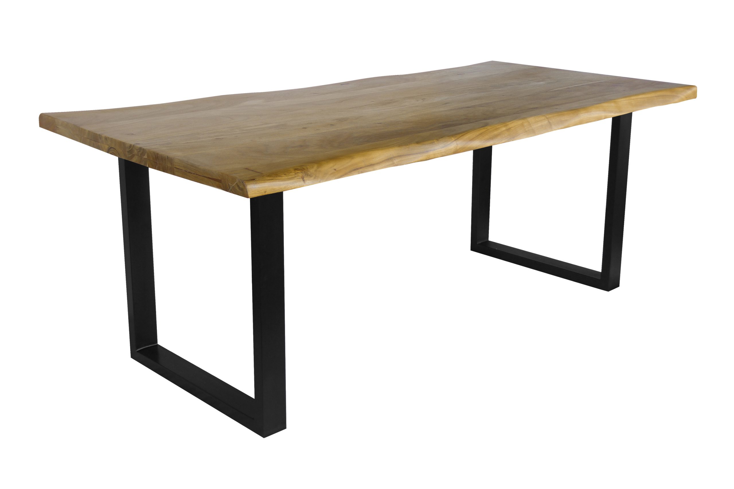 Baumkantentisch Cali | 180 x 90 cm | Akazienholz massiv eichefarben | U-Gestell Schwarz | Echte Baumkante
