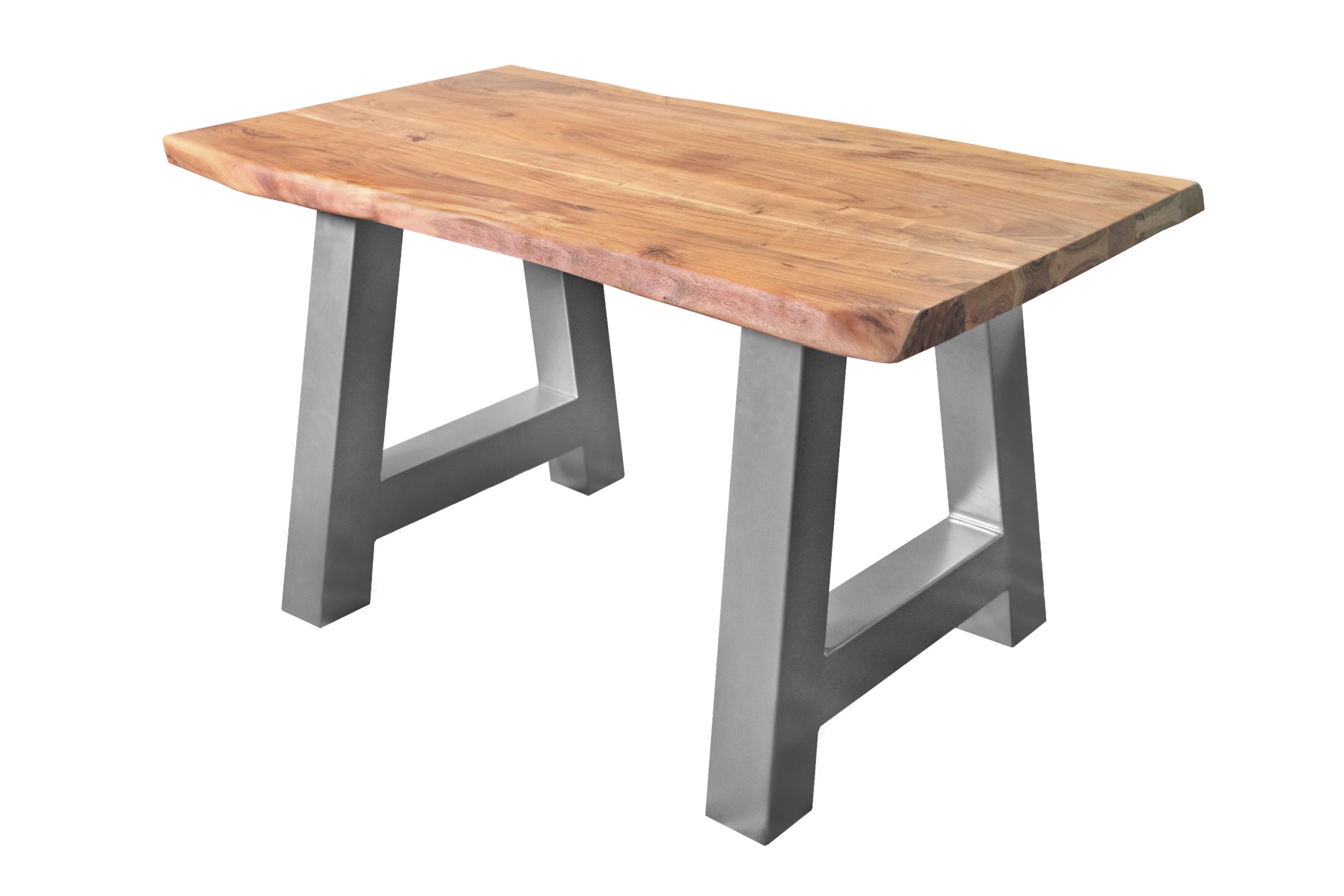 Baumkantentisch Cali | 140 x 80 cm | Akazienholz massiv naturfarben | A-Gestell Silber | Echte Baumkante