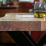 Die aufgedoppelte Tischkante (50 mm Gesamtstärke) verleiht dem Tisch nicht nur eine kraftvolle Optik, sondern sorgt auch für zusätzliche Stabilität. Das schwarze X-Gestell aus Metall steht im spannenden Kontrast zur natürlichen Tischplatte – eine gelungene Verbindung aus Natur und urbanem Industrial-Look.