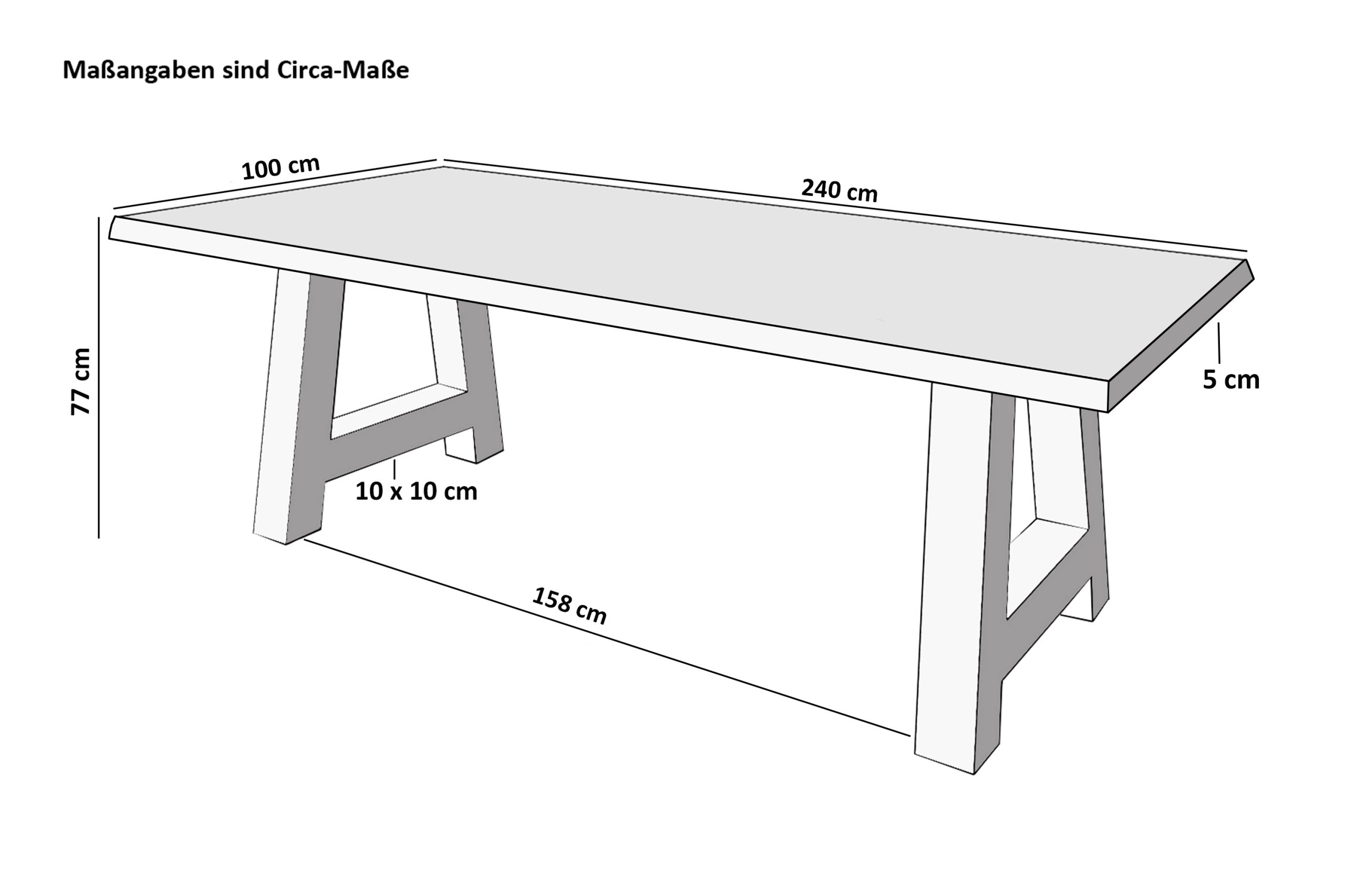 Länge: 240 cm | Breite: ca. 100 cm | Gesamthöhe: ca. 77 cm | Tischplattenstärke: ca. 50 mm (25 + 25 mm)