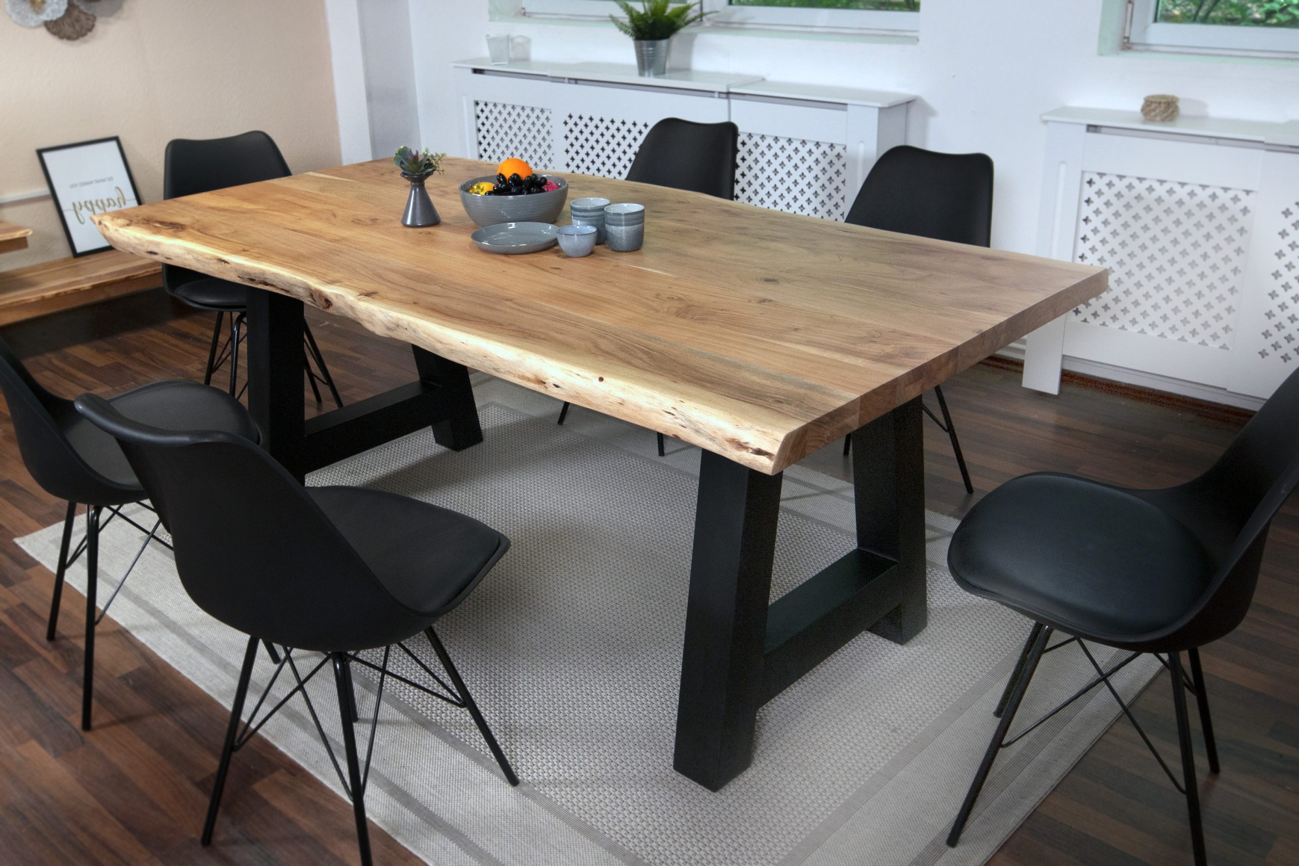 Baumkantentisch Cali | 300 x 100 cm | Akazienholz massiv naturfarben | A-Gestell Schwarz | Echte Baumkante