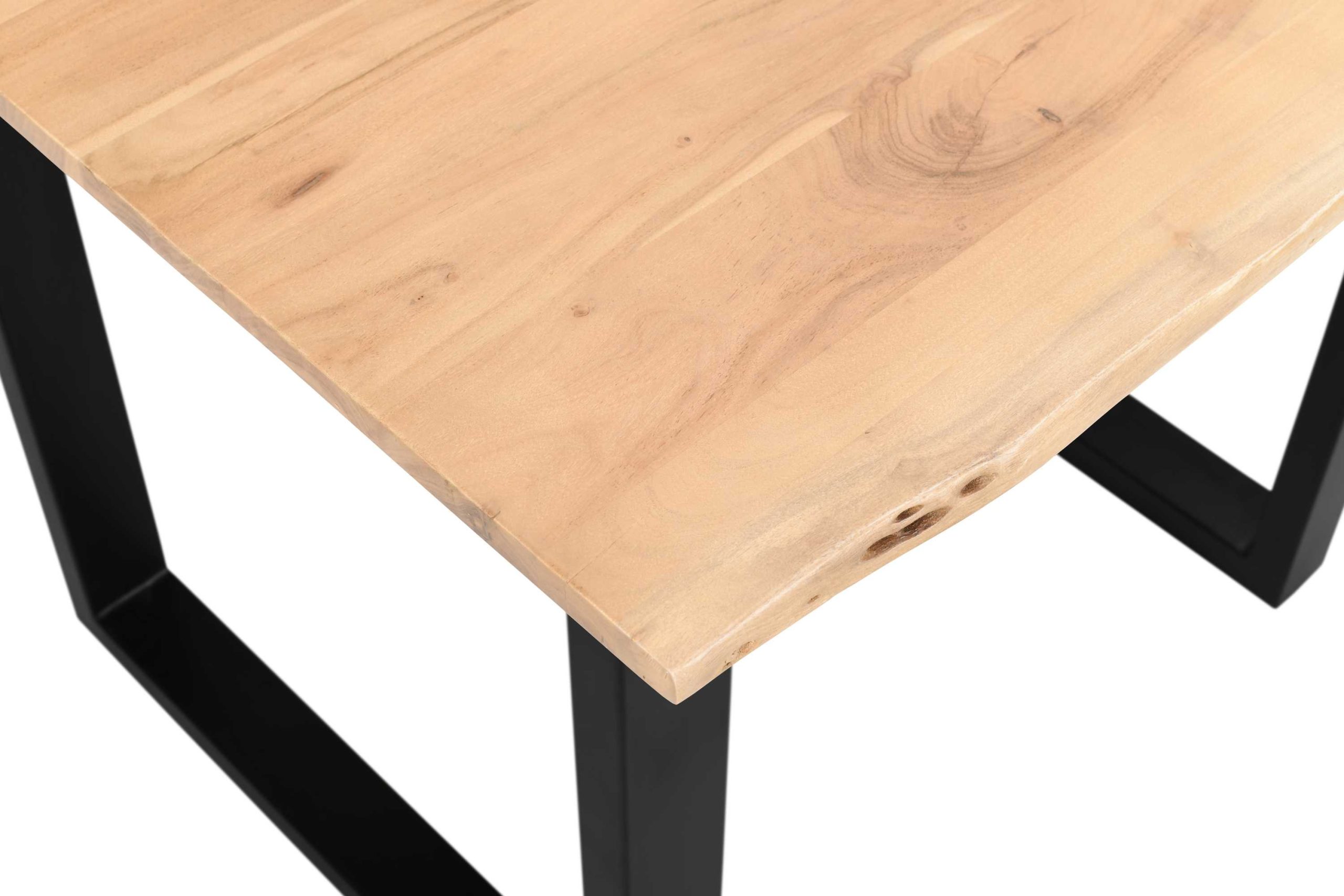 Esstisch Baumkante Akazie massiv eichenfarben 90 x 90 U-Gestell schwarz DEREK