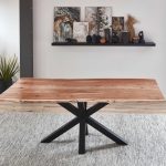 Baumkantentisch Quincy, Esszimmertisch 220 x 100 cm, Massivholz Akazie, naturfarben / schwarz