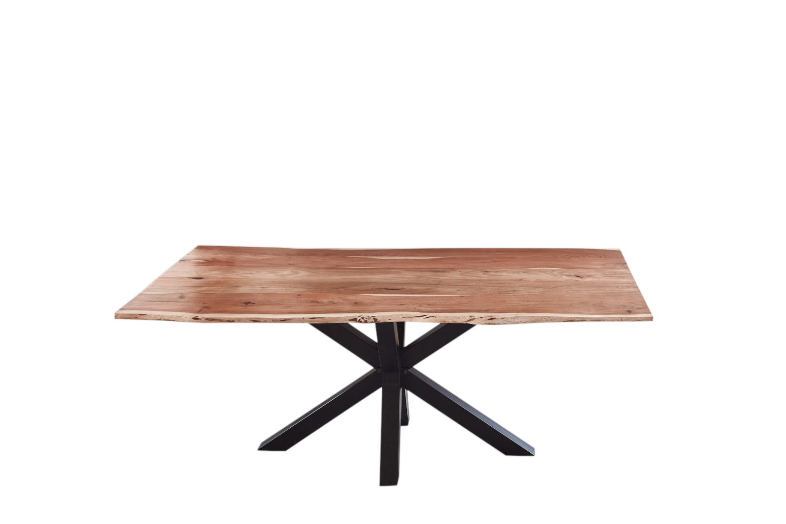 Baumkantentisch Quincy, Esszimmertisch 240 x 100 cm, Massivholz Akazie, naturfarben / schwarz