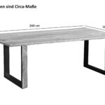 - Länge: 260 cm | Breite: ca. 100 cm | Gesamthöhe: ca. 77 cm | Tischplattenstärke: ca. 2,6 cm