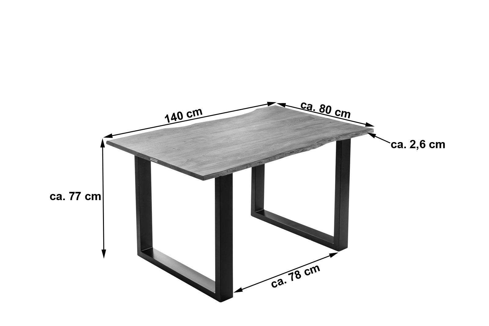 Länge: ca. 140 cm | Breite: ca. 80 cm | Höhe: ca. 77 cm | Tischplatte: ca. 2,6 cm