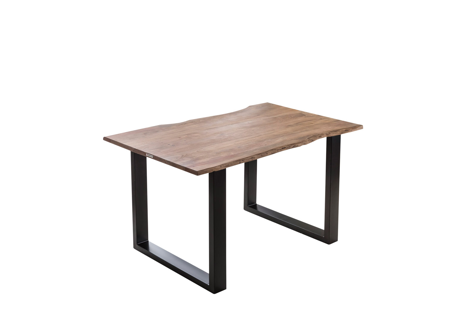 Esstisch Baumkante massiv 140 x 80 cm Akazie stone U-Gestell schwarz LAURINA