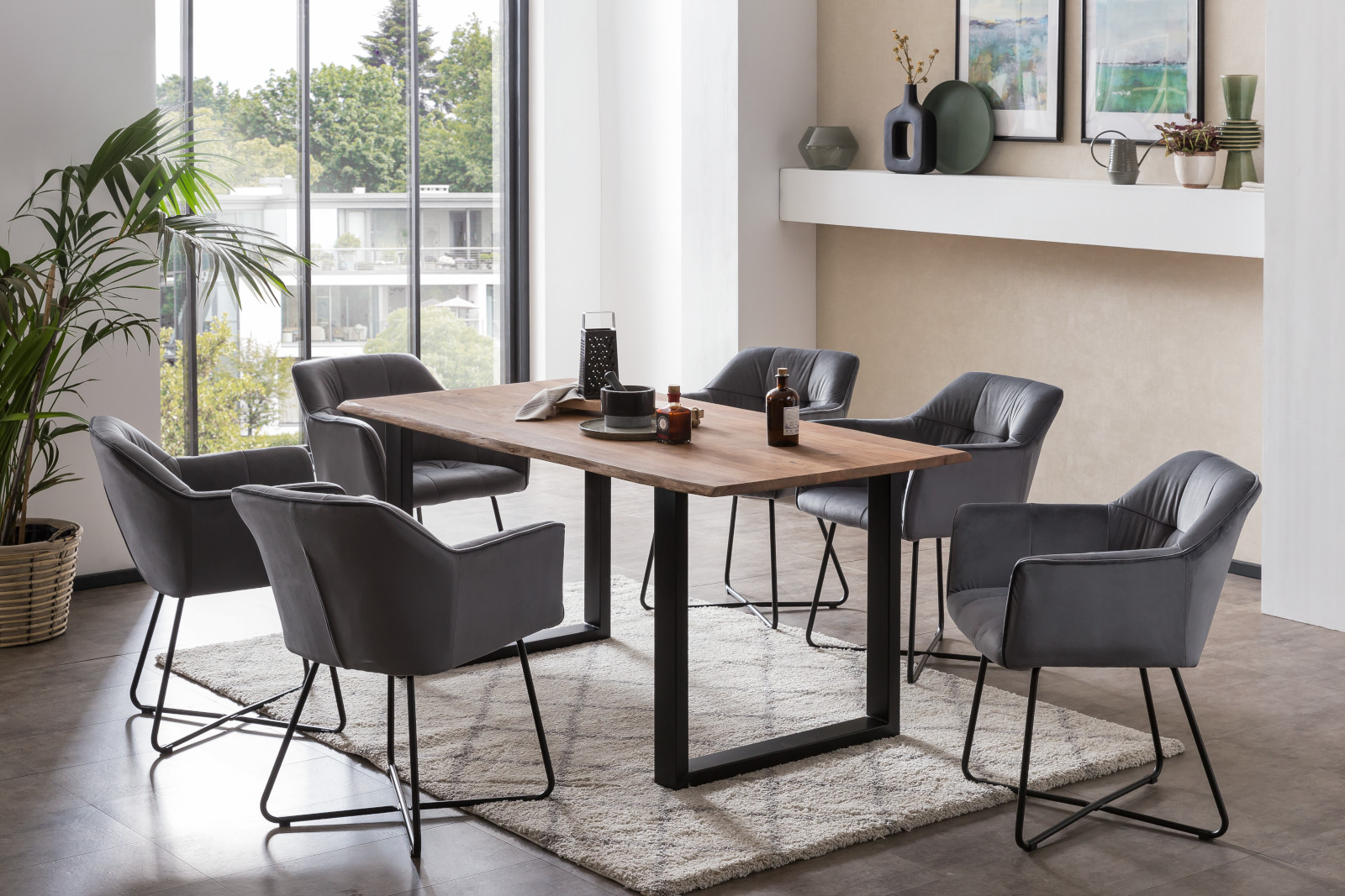 3 Rezensionen für Esstisch Baumkante massiv 160 x 85 cm Akazie stone U-Gestell schwarz LAURINA