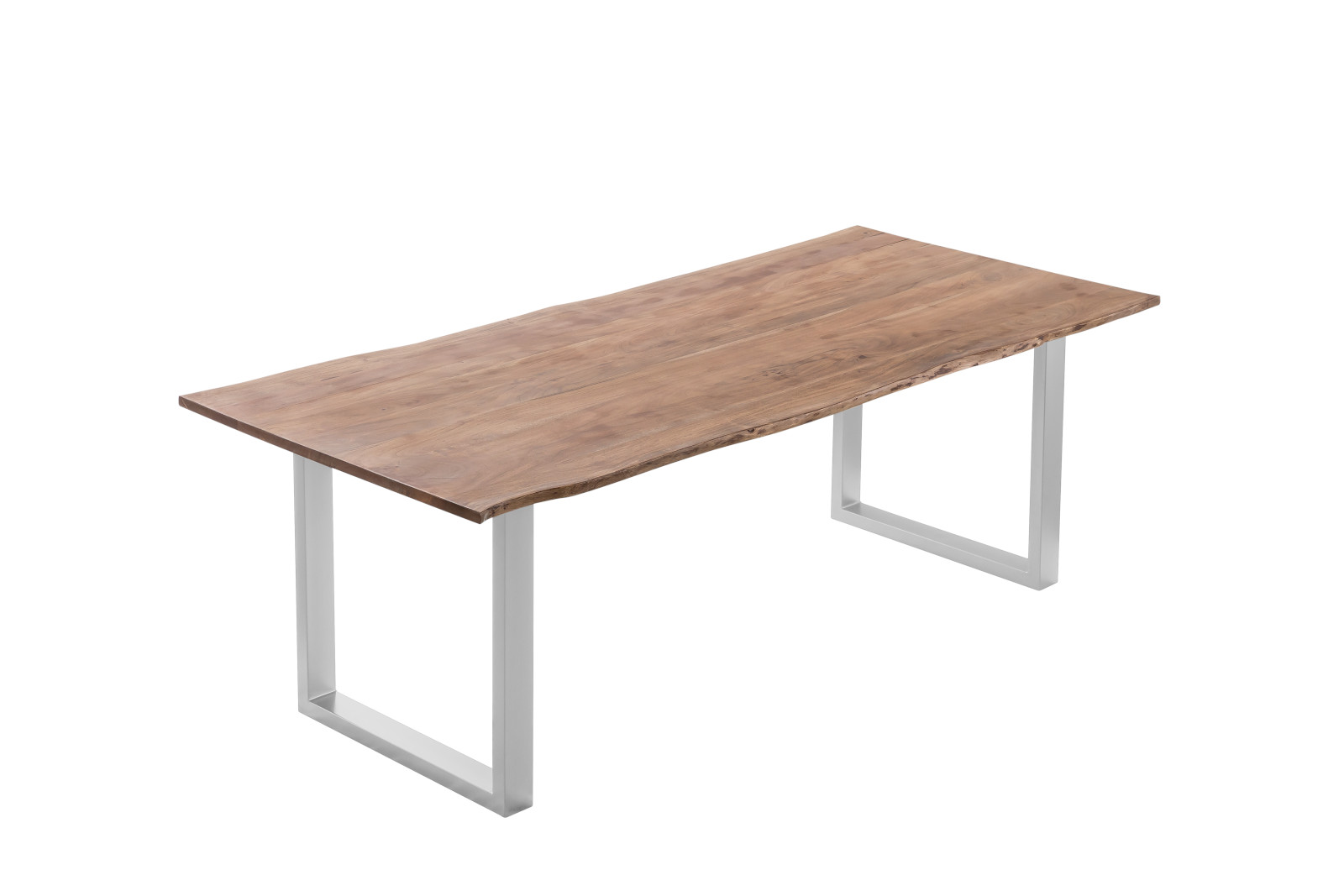 Esstisch Laurina | 220 x 100 cm | Akazienholz massiv + stonefarben | echte Baumkante | U-Gestell Silber