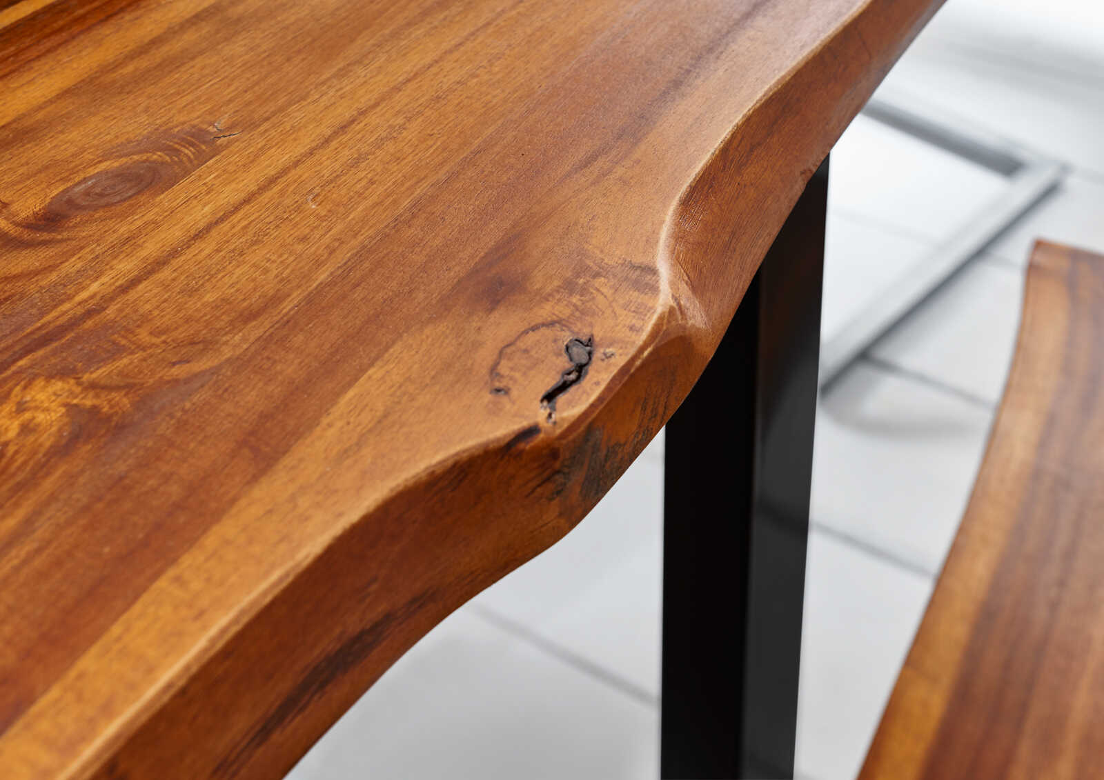 Schreiben Sie die erste Rezension für „Esstisch Baumkante massiv Akazie cognac 220 x 100 schwarz ESRA“