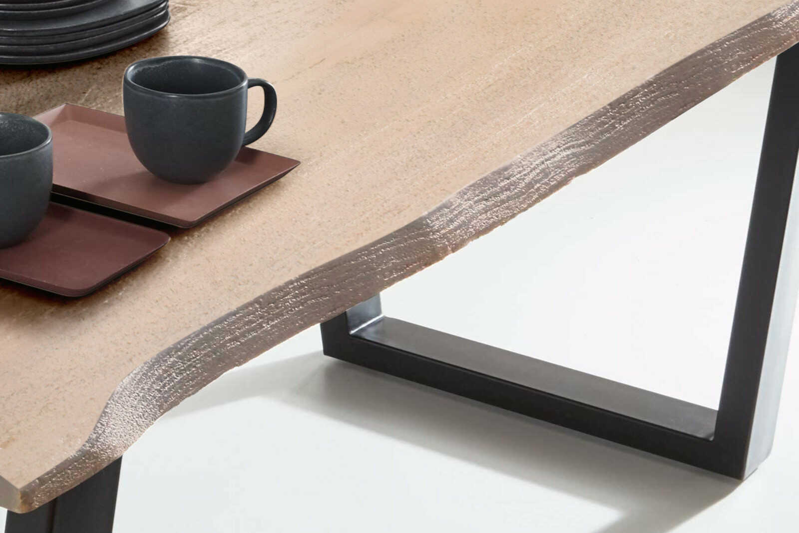 Esstisch Baumkante Massiv Akazie grau sandgestrahlt 220 x 100 schwarz Grace