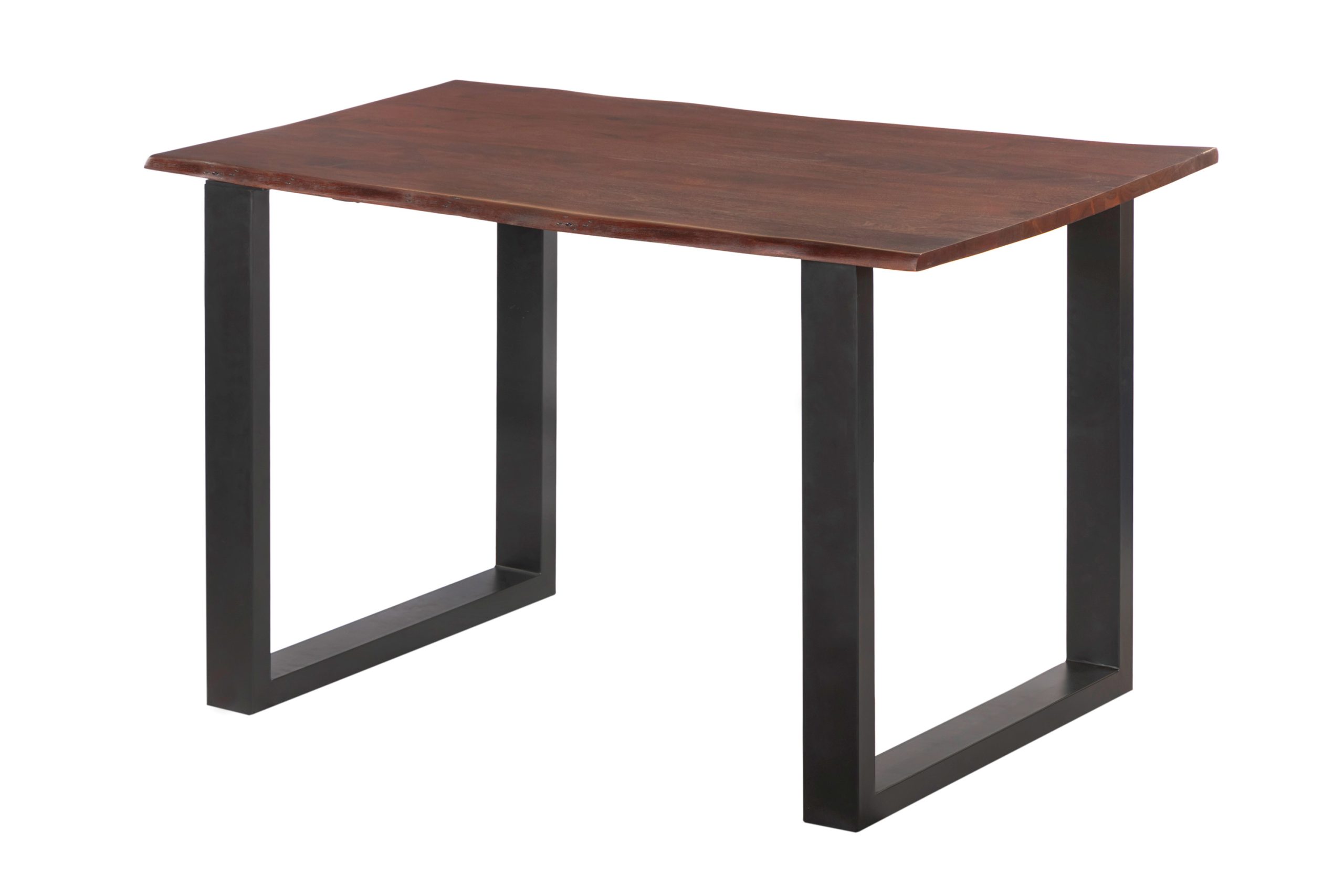Esstisch Baumkante massiv Akazie kastaniefarben 120 x 80 cm U-Gestell schwarz ROXANA