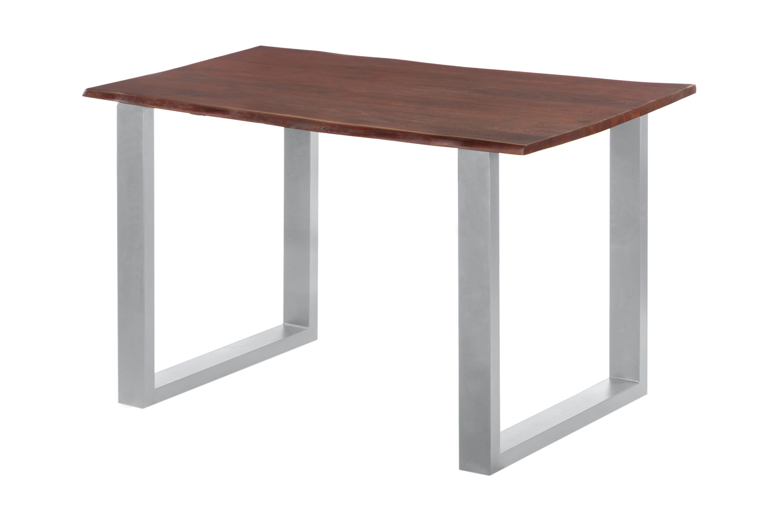 Esstisch Baumkante massiv Akazie kastaniefarben 120 x 80 cm U-Gestell silber ROXANA