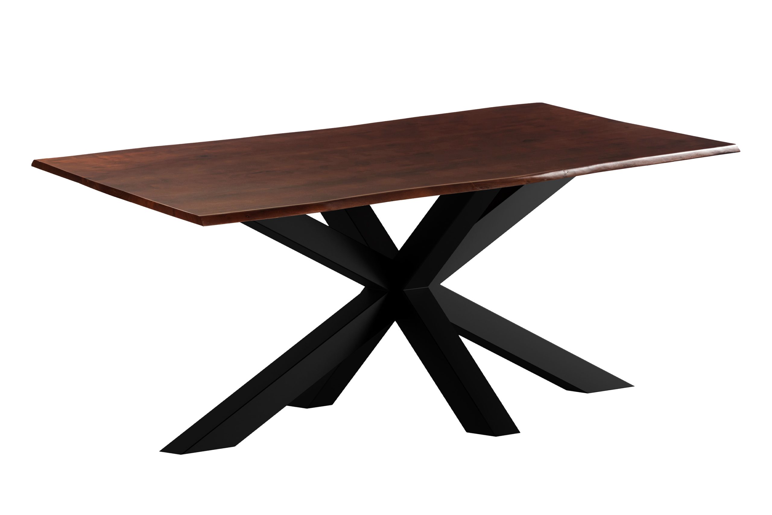 Esstisch Roxana | 200 x 100 cm | Akazienholz massiv + kastaniefarben | Spider-Gestell Schwarz | Echte Baumkante