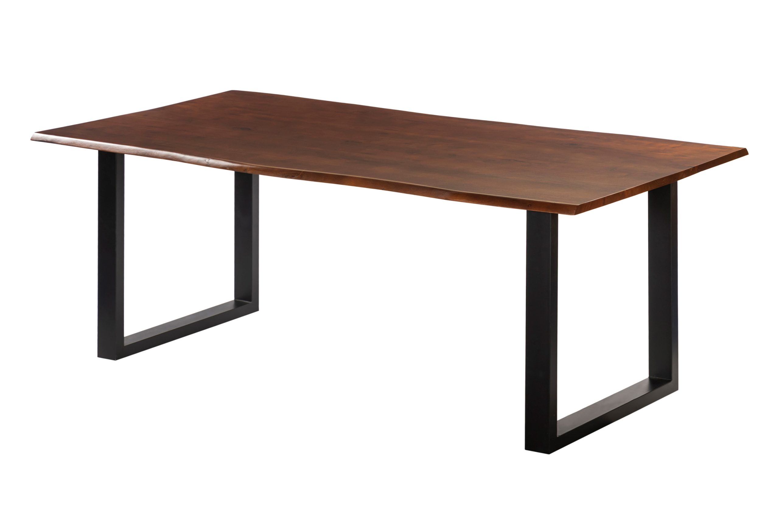 Esstisch Roxana | 200 x 100 cm | Akazienholz massiv + kastaniefarben | U-Gestell Schwarz | Echte Baumkante