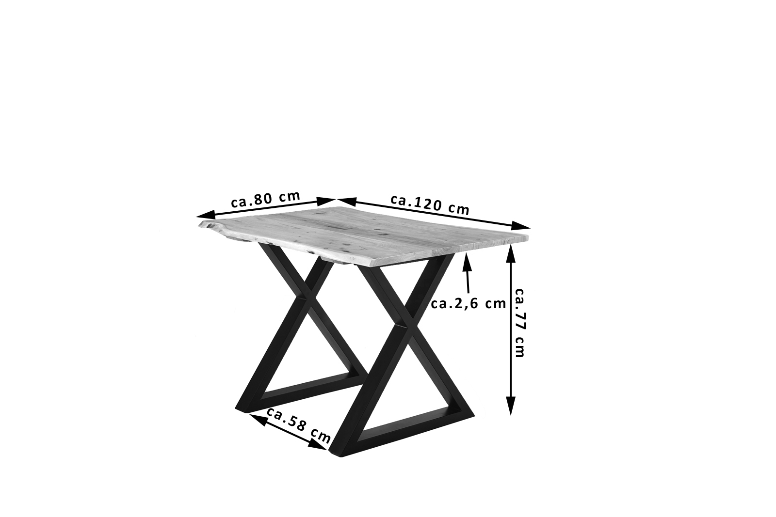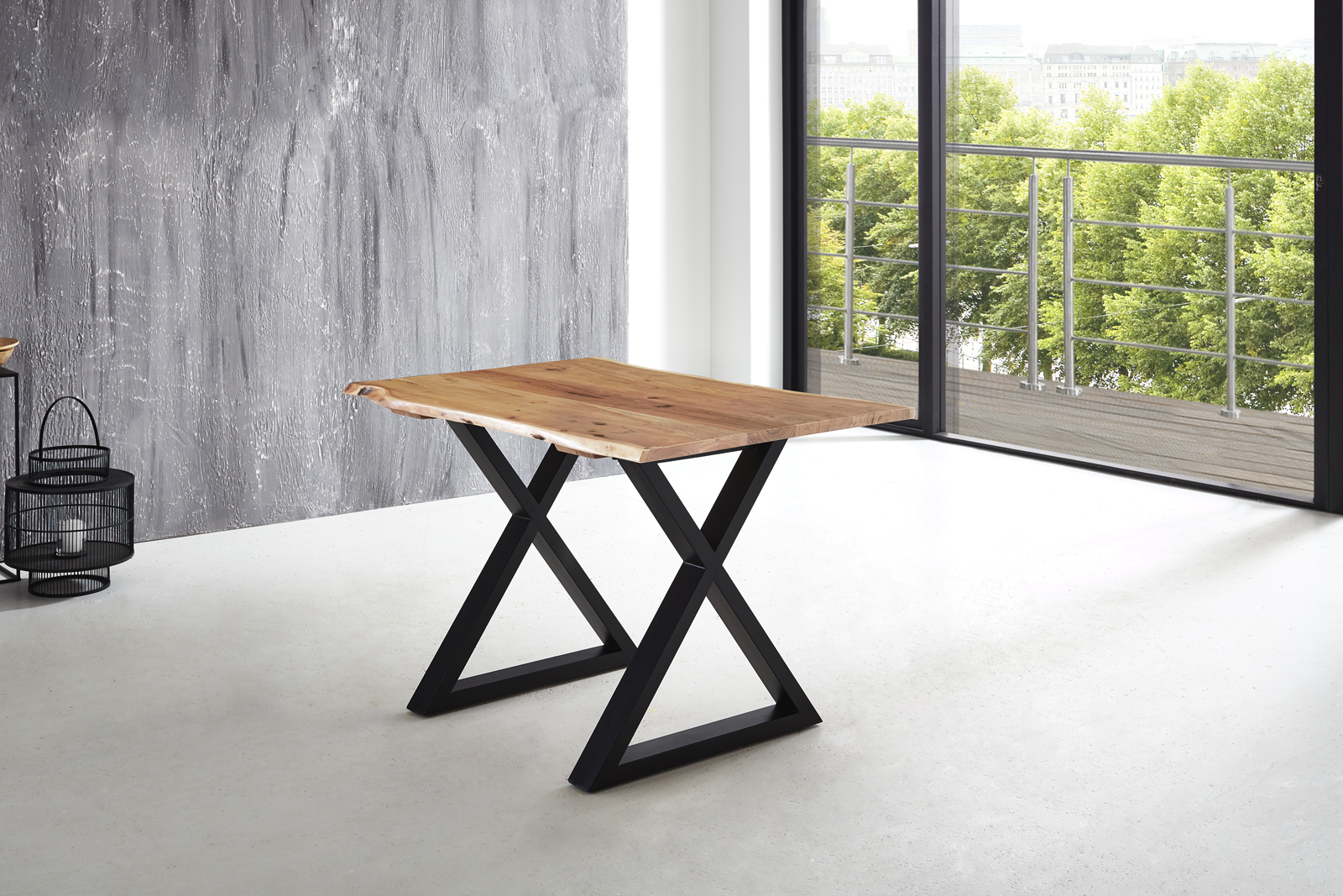 Esstisch Baumkante massiv Akazie natur 120 x 80 X-Gestell schwarz LUBIN
