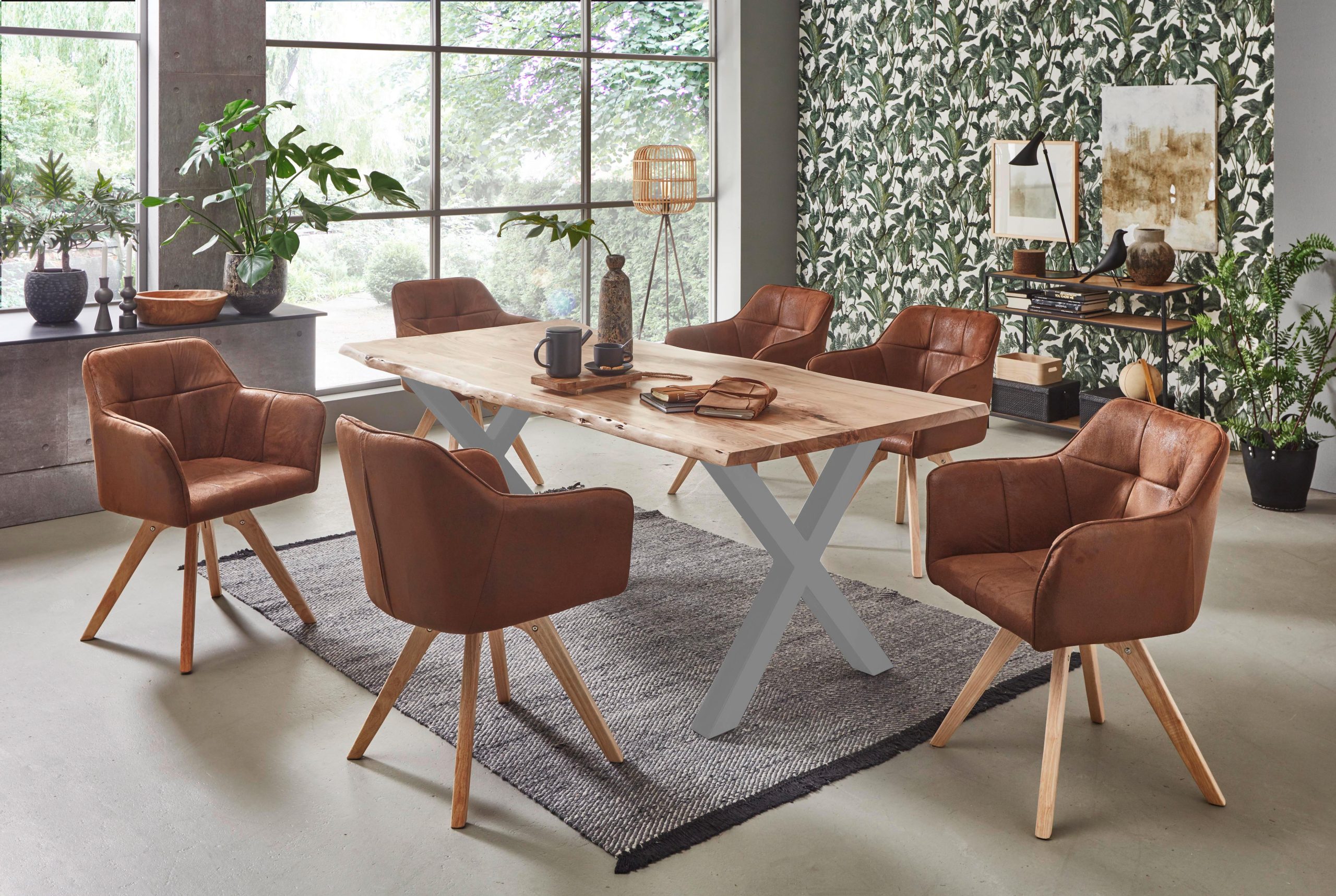 Unser trendiger Esstisch “FREDERIK“ überzeugt durch eine perfekt gelungene Kombination aus Natürlichkeit und stylischer Moderne. Besonderes Highlight des Esszimmertisches sind die Tischkanten, die den natürlichen Formen eines Baumes entsprechen und direkt aus dem Baumstamm geschnitten wurden. Das X-förmige Gestell sorgt für einen gelungenen Kontrast, welcher dem Massivholz-Tisch einen Hauch von industriellem Look verleiht.