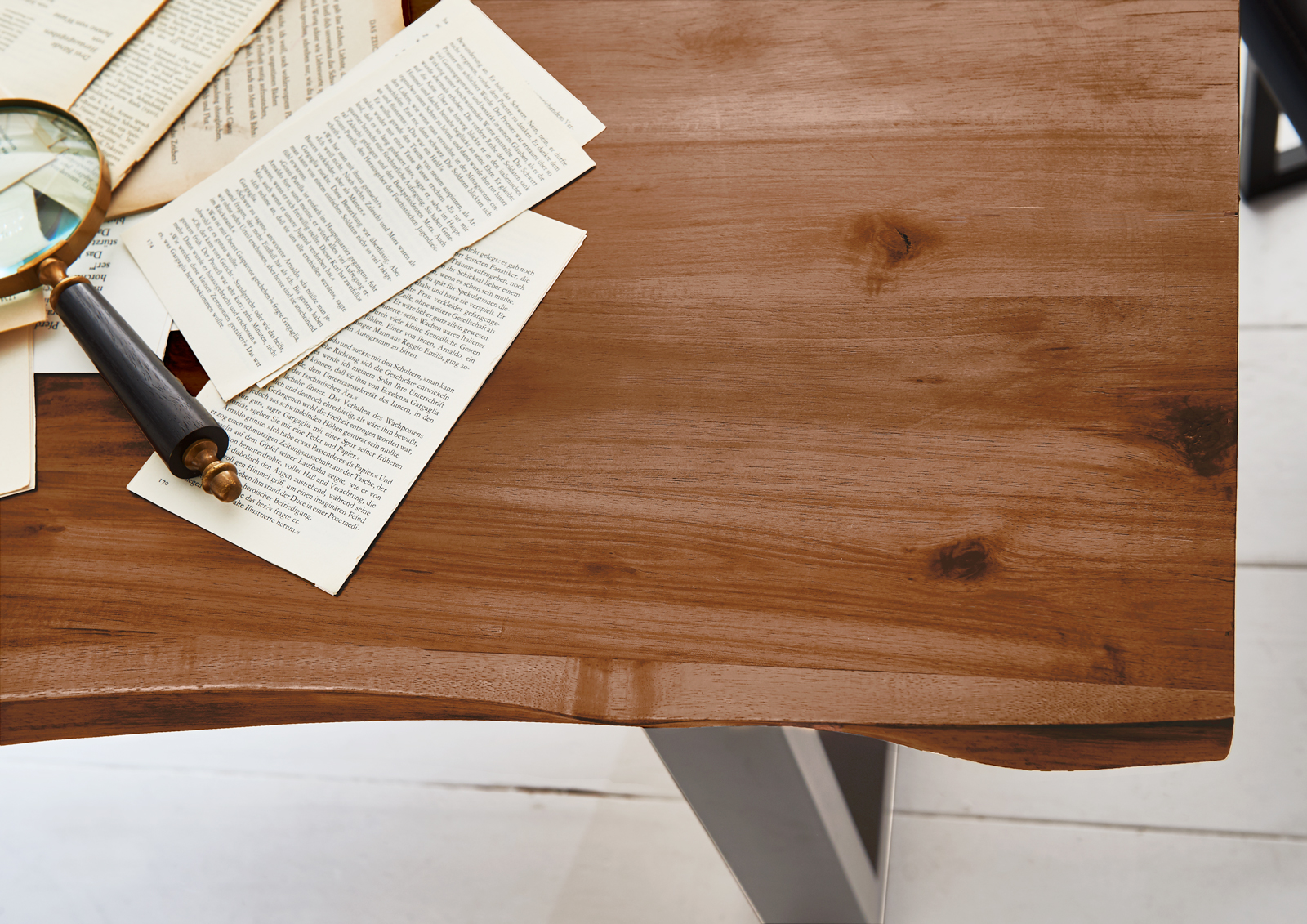 Natürliche & einzigartige Holzmaserung, U-Gestell in silber, mit echter Baumkante