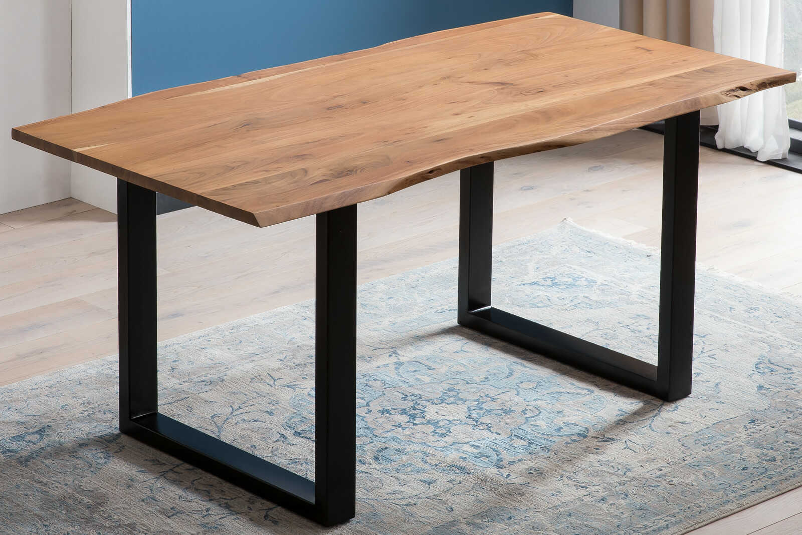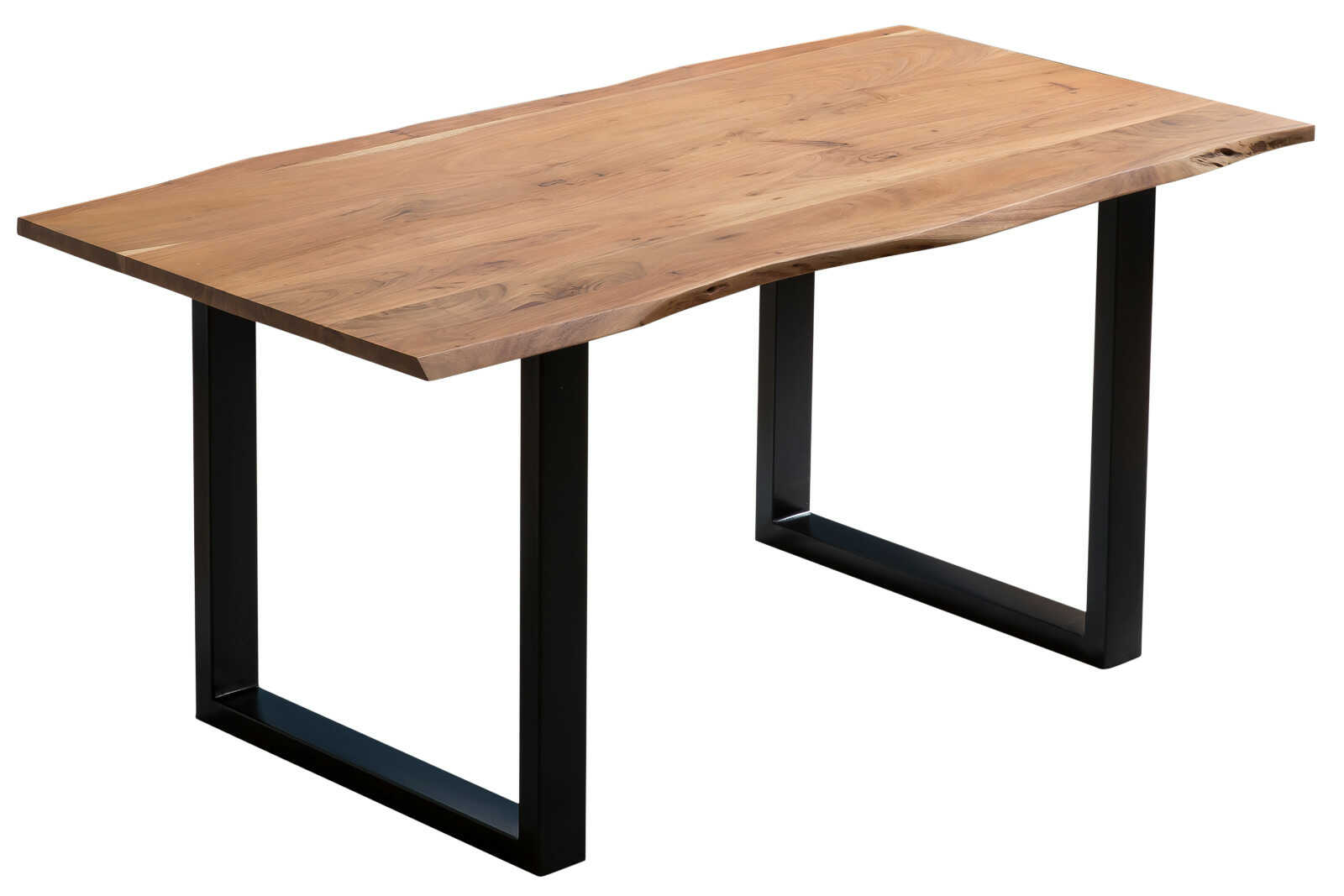 Esszimmertisch Carlos, Baumkantentisch 160 x 85 cm, Massivholz Akazie geölt / naturfarben, Gestell Schwarz