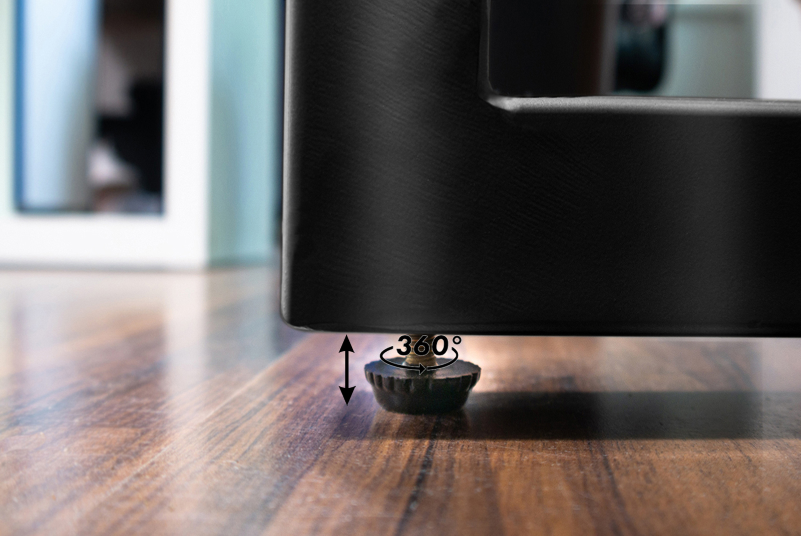 • Jedes Gestell besitzt zwei kleine heraus drehbare Füßchen an der Unterseite, um Unebenheiten auszugleichen.