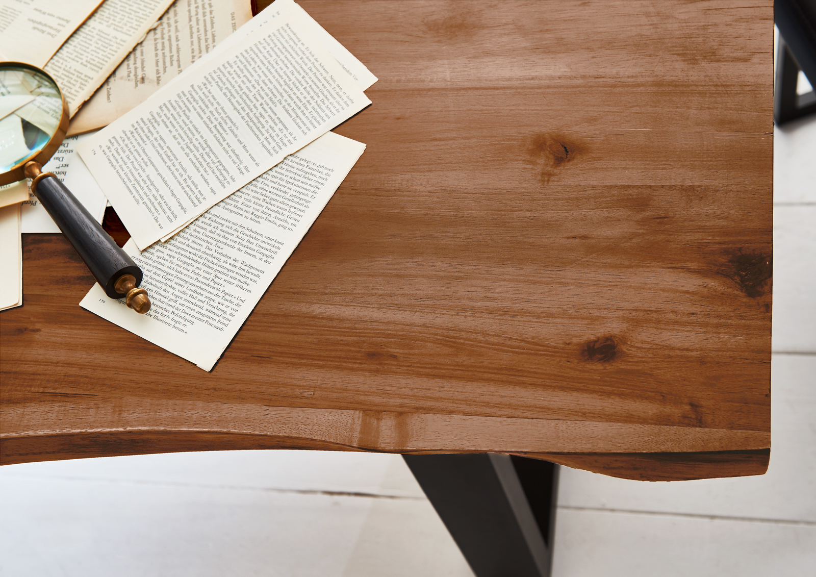 Natürliche & einzigartige Holzmaserung, U-Gestell in schwarz, mit echter Baumkante