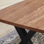 Unser trendiger Esstisch “Xanten“ überzeugt durch eine perfekt gelungene Kombination aus Natürlichkeit und stylischer Moderne. Besonderes Highlight des Esszimmertisches sind die Tischkanten, die den natürlichen Formen eines Baumes entsprechen und direkt aus dem Baumstamm geschnitten wurden. Das X-förmige Gestell sorgt für einen gelungenen Kontrast, welcher dem Massivholz-Tisch einen Hauch von industriellem Look verleiht.