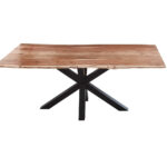 Baumkantentisch Felina, Esszimmertisch 220 x 100 cm, Massivholz Akazie, naturfarben / schwarz