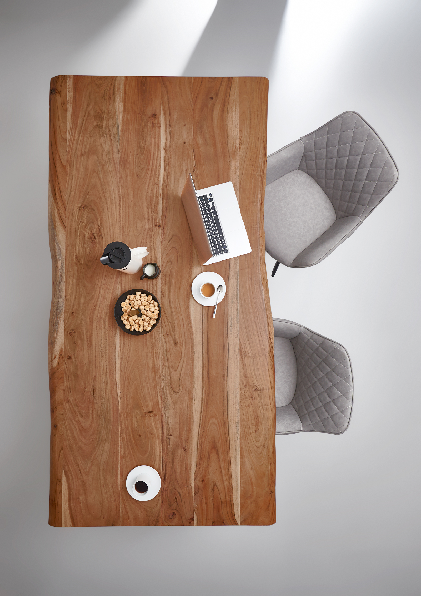 Baumkantentisch Milo, Esszimmertisch 220 x 100 cm, Massivholz Akazie, naturfarben / U-Gestell silber