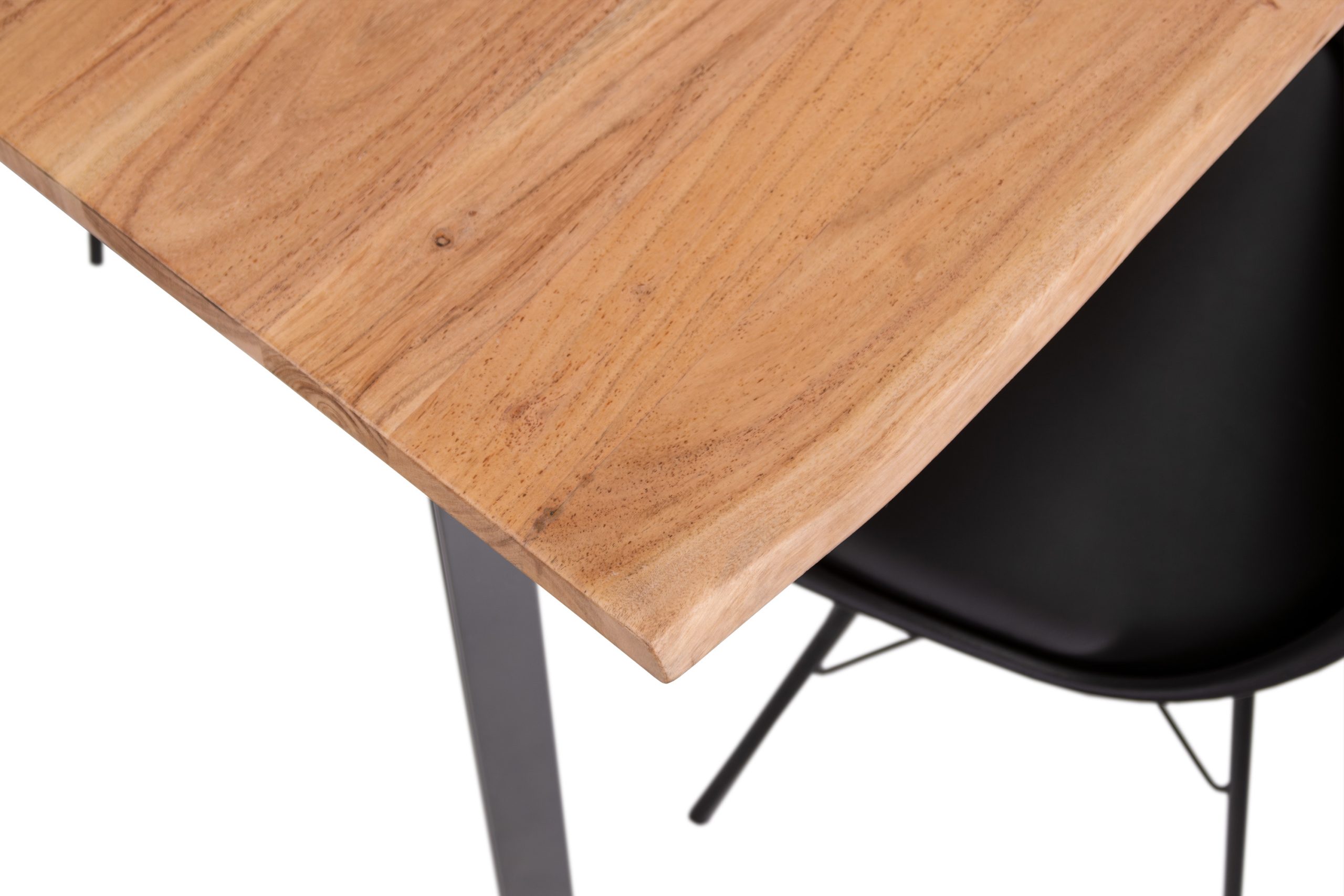 Die massive Tischplatte aus hochwertigem Akazienholz ist langlebig und dezent lackiert. Zur Versiegelung verwenden wir nur umweltfreundlichen Lack, der die Oberfläche nicht zu 100% versiegelt und so die charakteristische Haptik des Holzes erhält sowie für ein gutes Raumklima sorgt. Die 26 mm starken sowie massiven Holzbohlen aus Akazienholz sind langlebig und robust. Akazienholz ist gelb bis goldbraun und ein hartes, widerstandsfähiges Holz. Die unterschiedlichen Maserungen, Farbnuancen und die echte Baumkante verleihen dem Tisch einen einzigartigen Charakter.