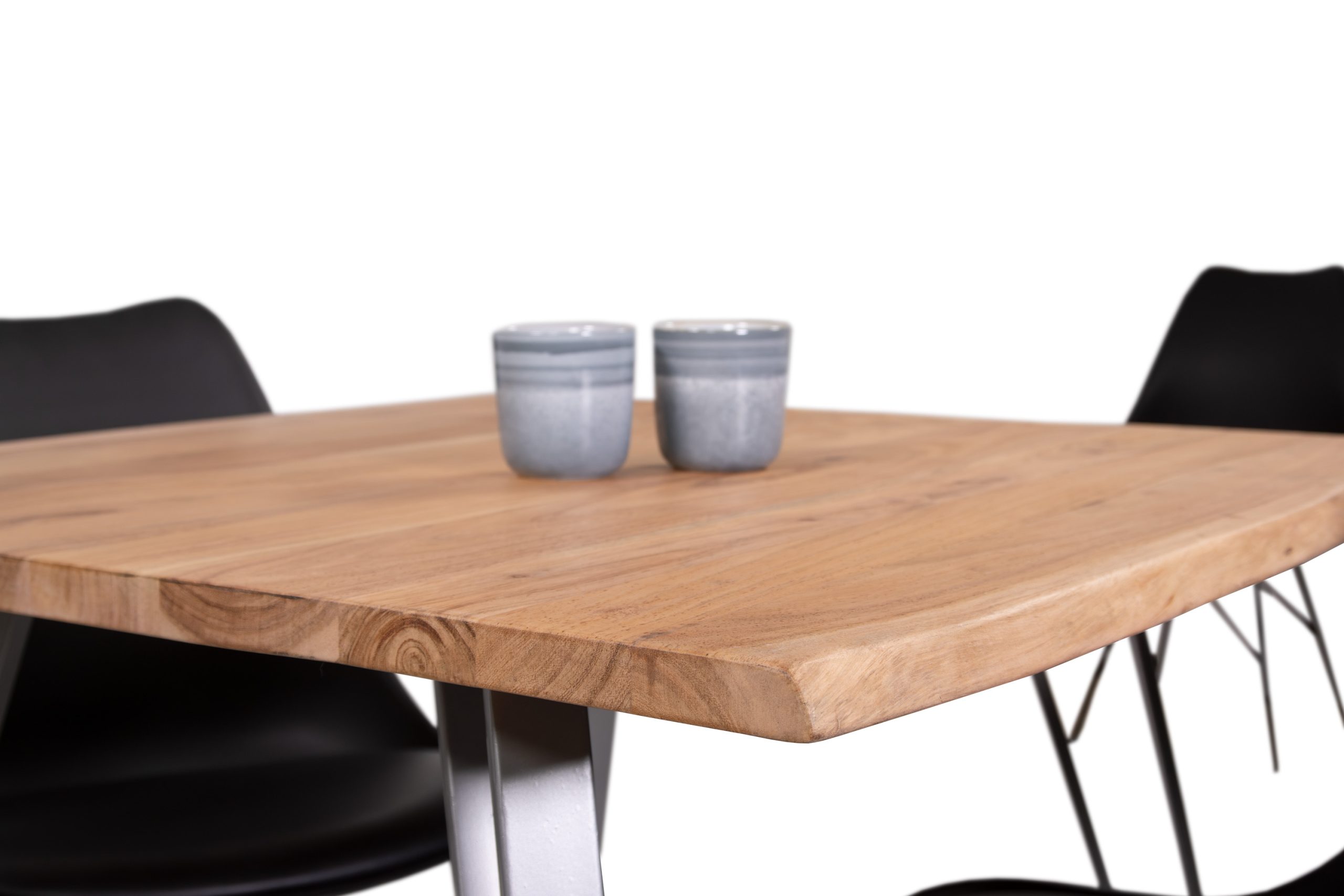 Schreibe die erste Rezension für „Esstisch Baumkante massiv Akazie natur 80 x 80 cm Metallgestell silber CELIA“