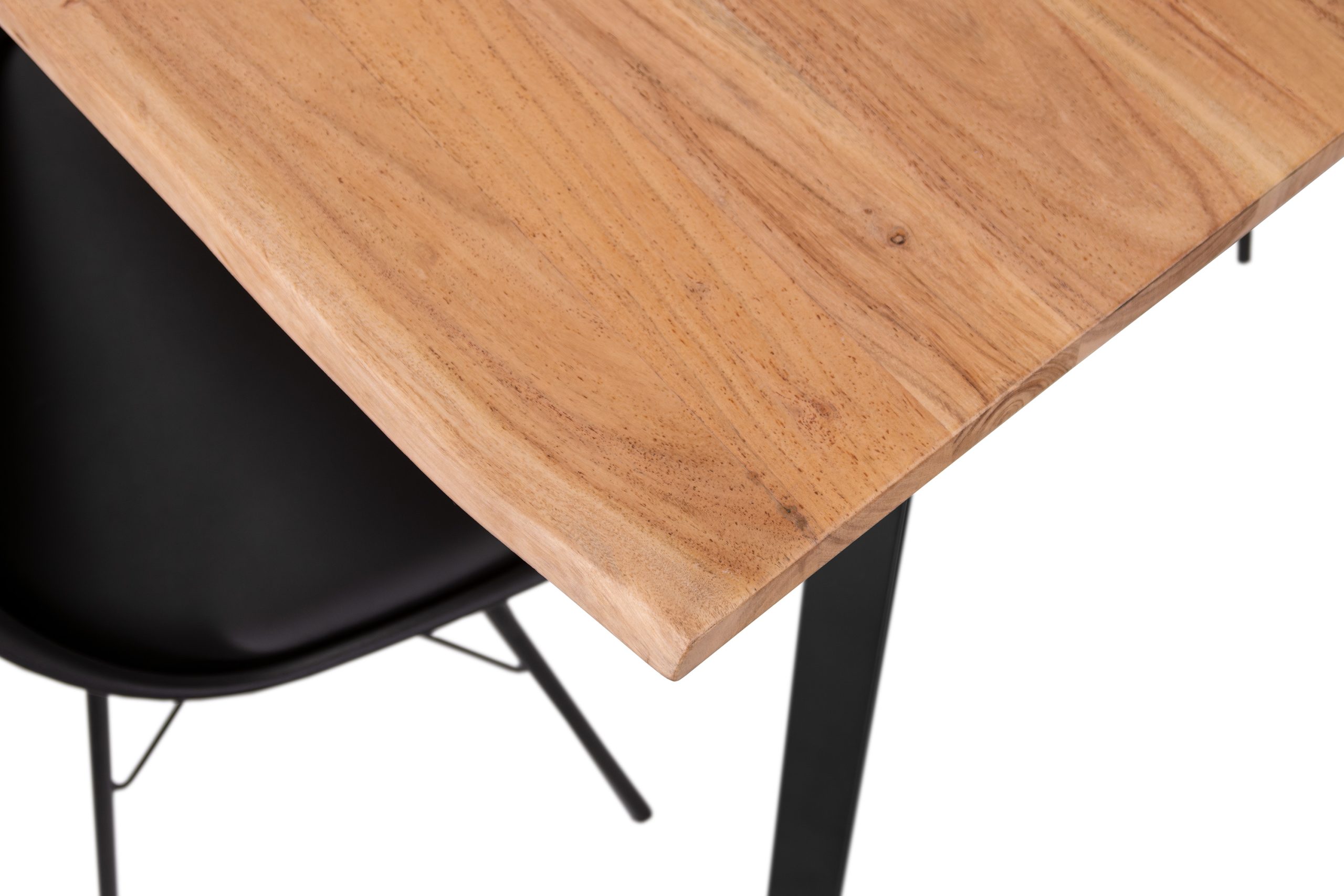 Die massive Tischplatte aus hochwertigem Akazienholz ist langlebig und dezent lackiert. Zur Versiegelung verwenden wir nur umweltfreundlichen Lack, der die Oberfläche nicht zu 100% versiegelt und so die charakteristische Haptik des Holzes erhält sowie für ein gutes Raumklima sorgt. Die 26 mm starken sowie massiven Holzbohlen aus Akazienholz sind langlebig und robust. Akazienholz ist gelb bis goldbraun und ein hartes, widerstandsfähiges Holz. Die unterschiedlichen Maserungen, Farbnuancen und die echte Baumkante verleihen dem Tisch einen einzigartigen Charakter.