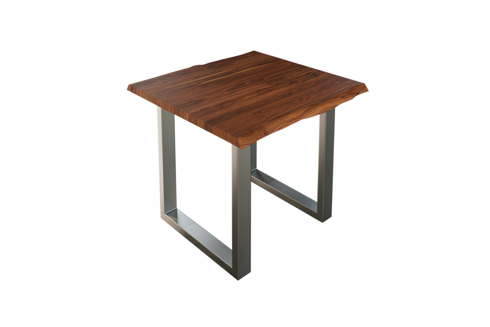 Massiver Esstisch Lauren 90 x 90 cm, massives Akazienholz Natur in nougat, naturbelassene Baumkante, silbernes U-Gestell