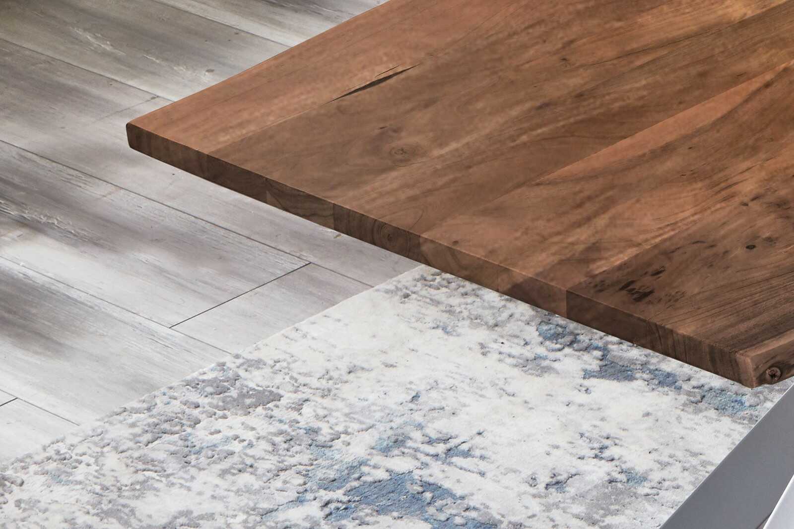 Baumkantentisch Benni | 140 x 80 cm | Akazienholz massiv nussbaumfarben | Spider-Gestell Silber | Echte Baumkante